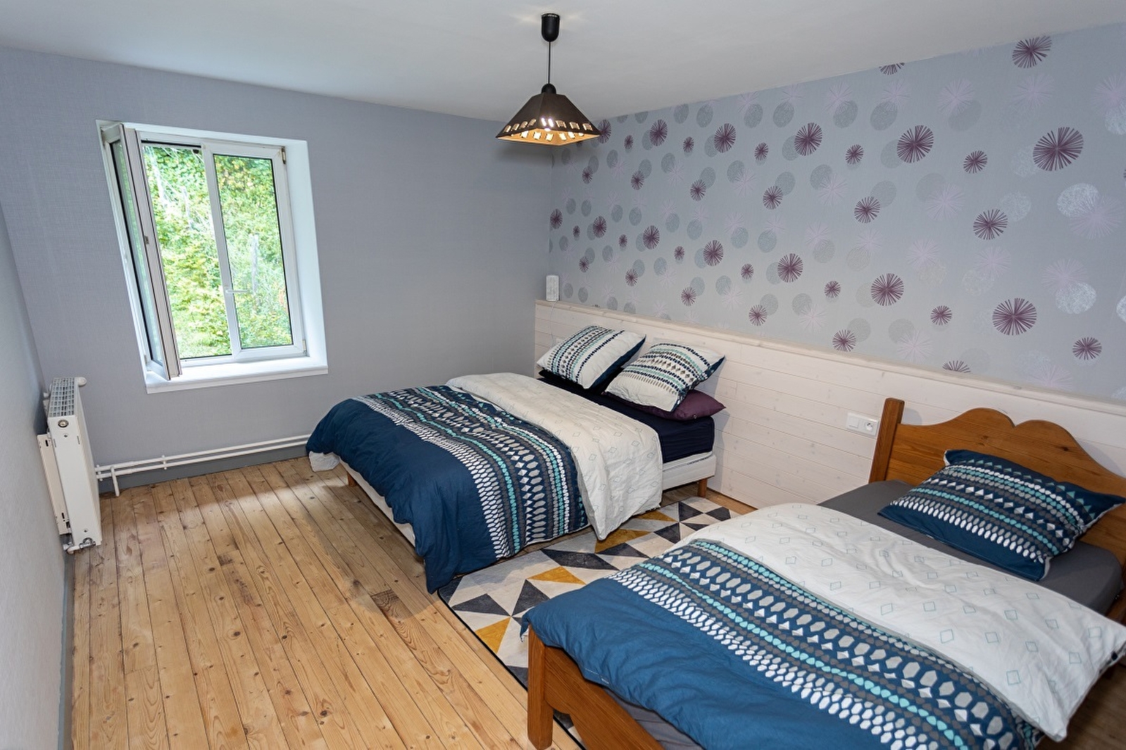 Gîte entièrement rénové à 7 min d'Orgelet et 10 km du lac de Vouglans. Chauffage central. Sur 100 m² composé à l’étage de 2 chambres (1 avec lit 140 et lit 90, l’autre avec lit 140 + lit bébé), draps fournis, Au rez-de-chaussée coin cuisine (entièrement équipée), séjour (fourneau, bois fourni), salon (TV), salle de bains (lave-linge), terrasse privée + terrasse couverte en commun avec propriétaire. barbecue, espace vert, terrain de pétanque. Proximité de sentiers de randonnées pédestres et VTT. Animaux non acceptés.