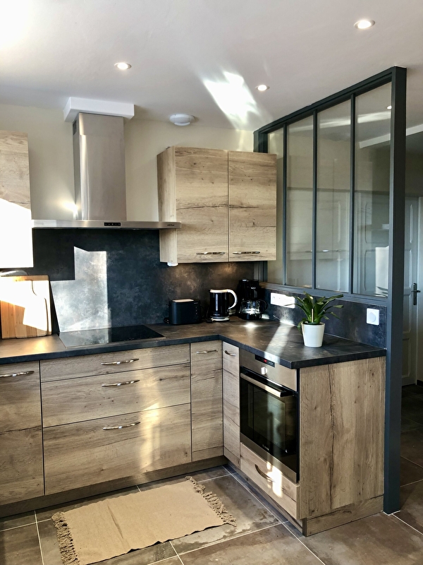 Le rdc se compose d'une grande pièce lumineuse avec cuisine toute équipée ouverte sur salle à manger et salon, vous trouverez une chambre double lit king size, une deuxième chambre avec lits twins ou double, un toilette, une salle de bain avec douche italienne.