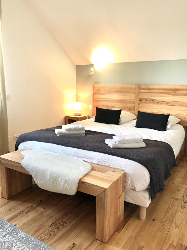 L'étage se compose d'un petit salon cosy idéal pour le travail ou la lecture, transformable en chambre (lit double), vous trouverez également une grande chambre triple, une chambre double et une salle de bain avec douche italienne et WC.