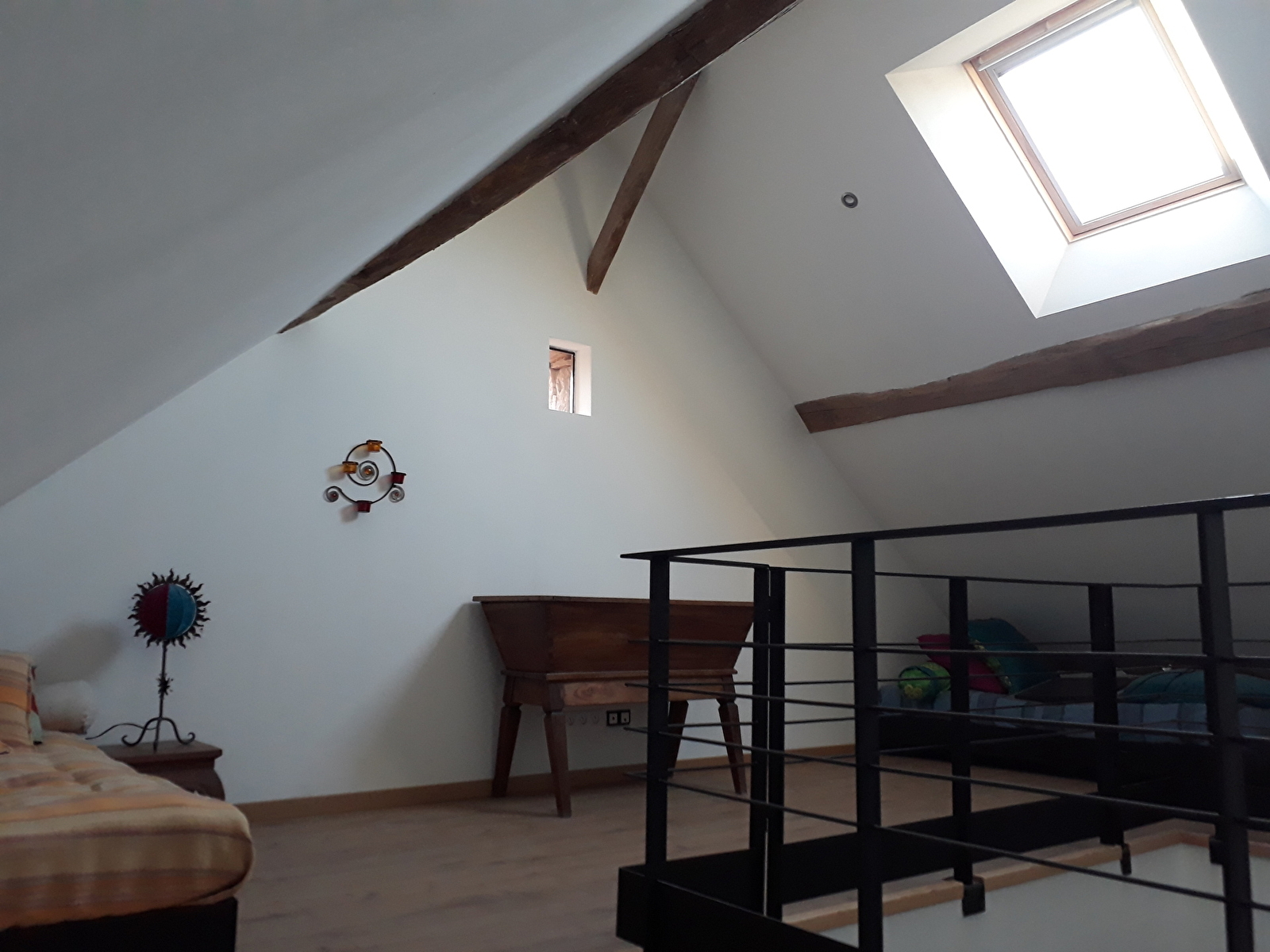 Notre gîte accueille 6 personnes de façon totalement indépendante par rapport à la maison principale sur une surface totale de 100 m². Vous bénéficiez de tout le confort d’une maison qui a conservé le charme de la pierre, tout en vous offrant le confort moderne (isolation, chauffage, wifi etc…) ouverte sur le jardin, 7000 m² et la nature environnante. Entièrement rénové avec des matériaux bruts et de qualité mariant la pierre, le métal et le bois, le gîte se compose d’un salon ouvert sur la cuisine d’un côté et sur la terrasse et le jardin de l’autre, de deux chambres doubles partageant une salle de bain avec une douche et une mezzanine avec deux lits simples.