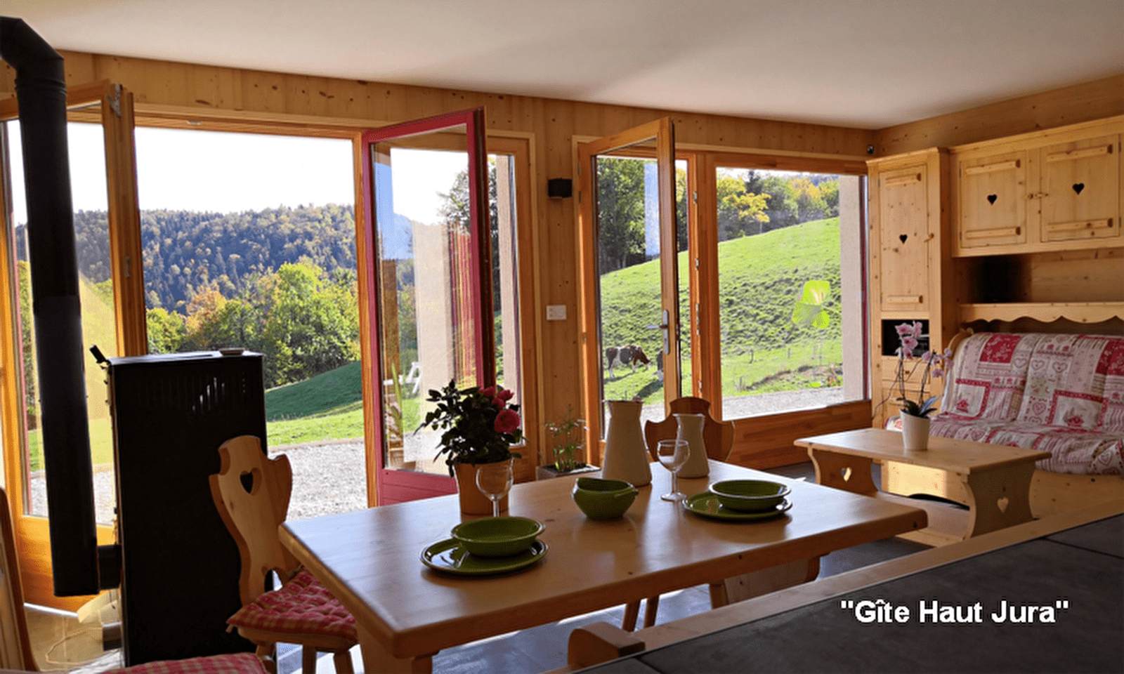 Vue exceptionnelle à 180° sur le Parc du Haut Jura. Sauna, home cinéma, plus de 800 m² de jardin privatif, terrasse et parking privés. Dans un village avec épicerie, cabinet médical, pharmacie, gare, piscine, tennis, restaurant.