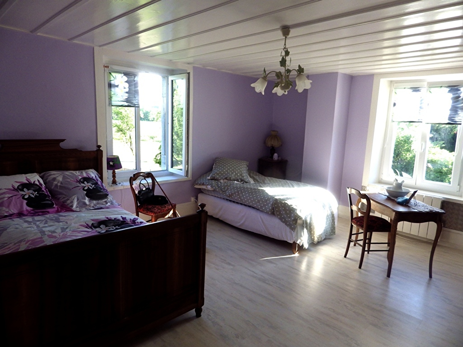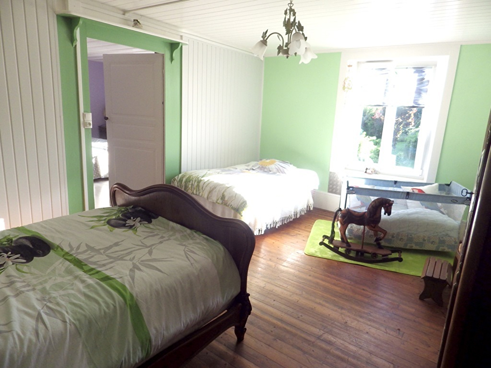 A l'étage, la maison dispose de deux chambres mitoyennes avec chacune un lit double et un lit simple.