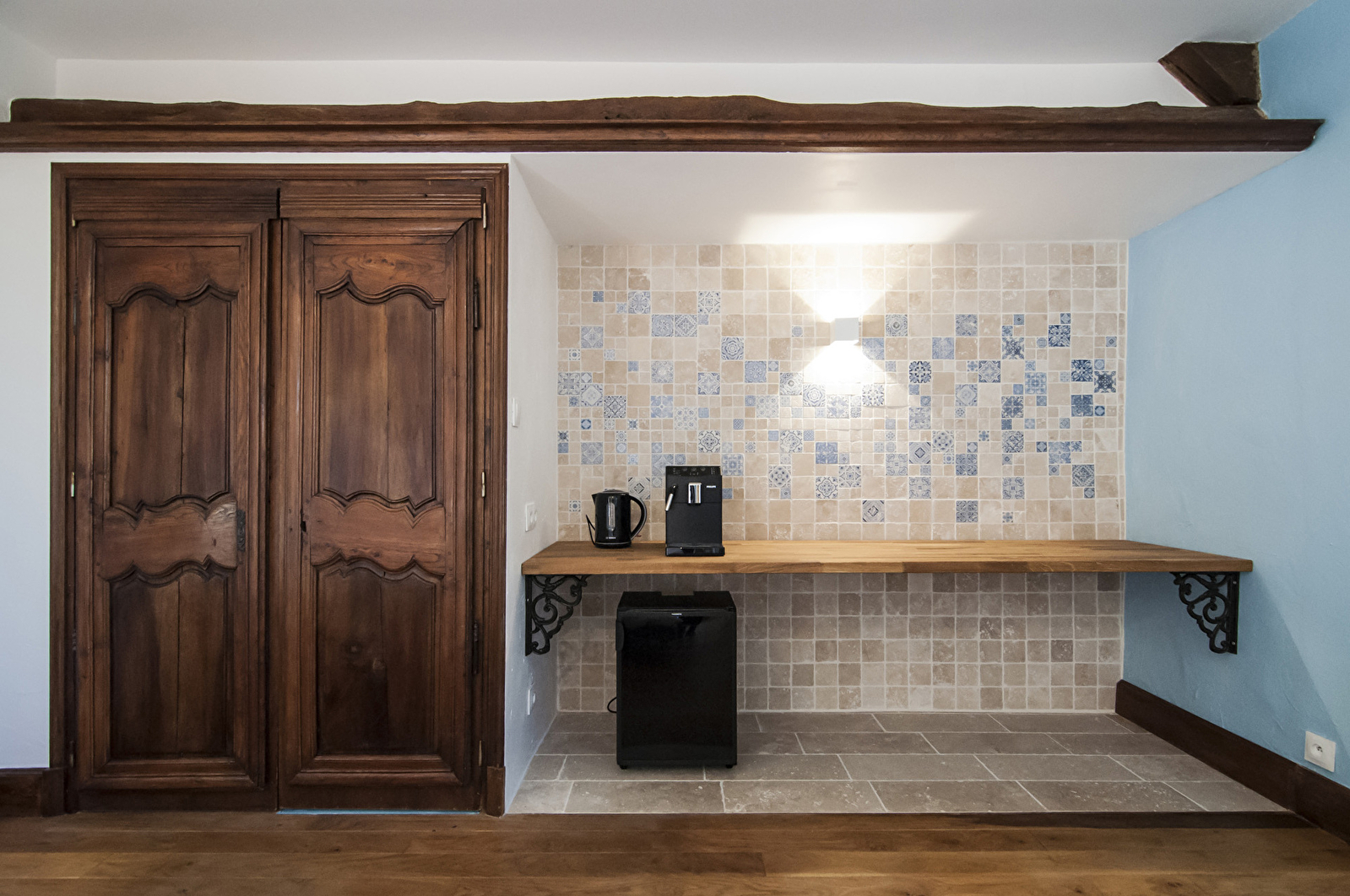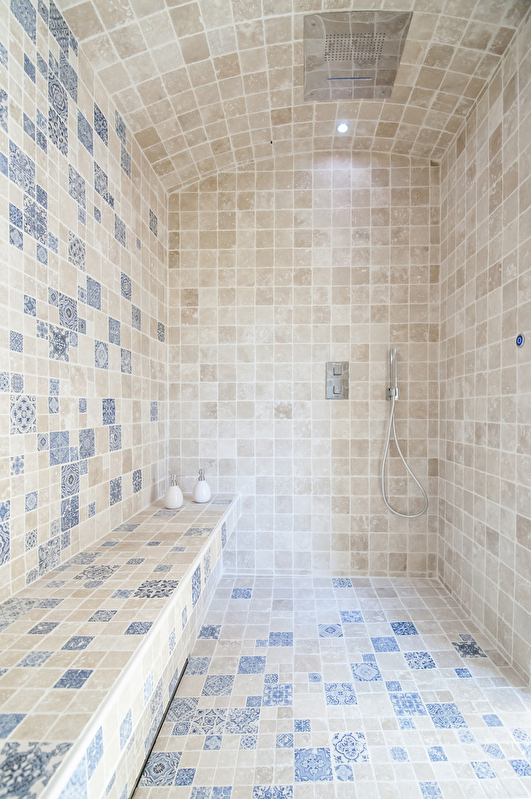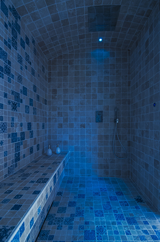 3 chambres de 38 à 60m², avec salle de bain, sauna ou hammam dans chaque chambre. Salon de 60m² avec cheminée et bois fourni. Cuisine équipée, avec piano de cuisine, 2 fours + 1 four micro onde, frigo, congélateur, lave vaisselle. Cafetière à grain, bouilloire, et service à thé/café dans chaque chambre et dans le salon.