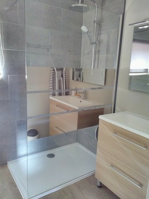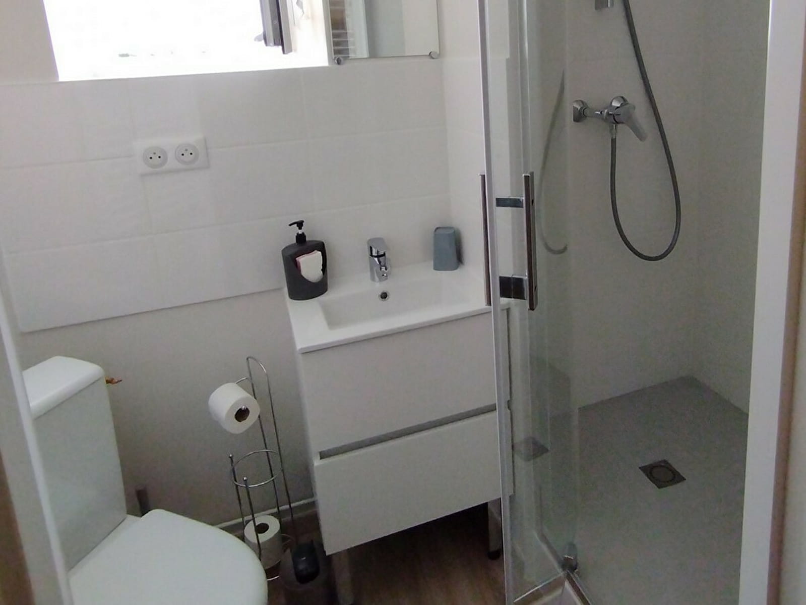 • une salle d'eau avec lavabo, douche, sèche-serviettes et WC