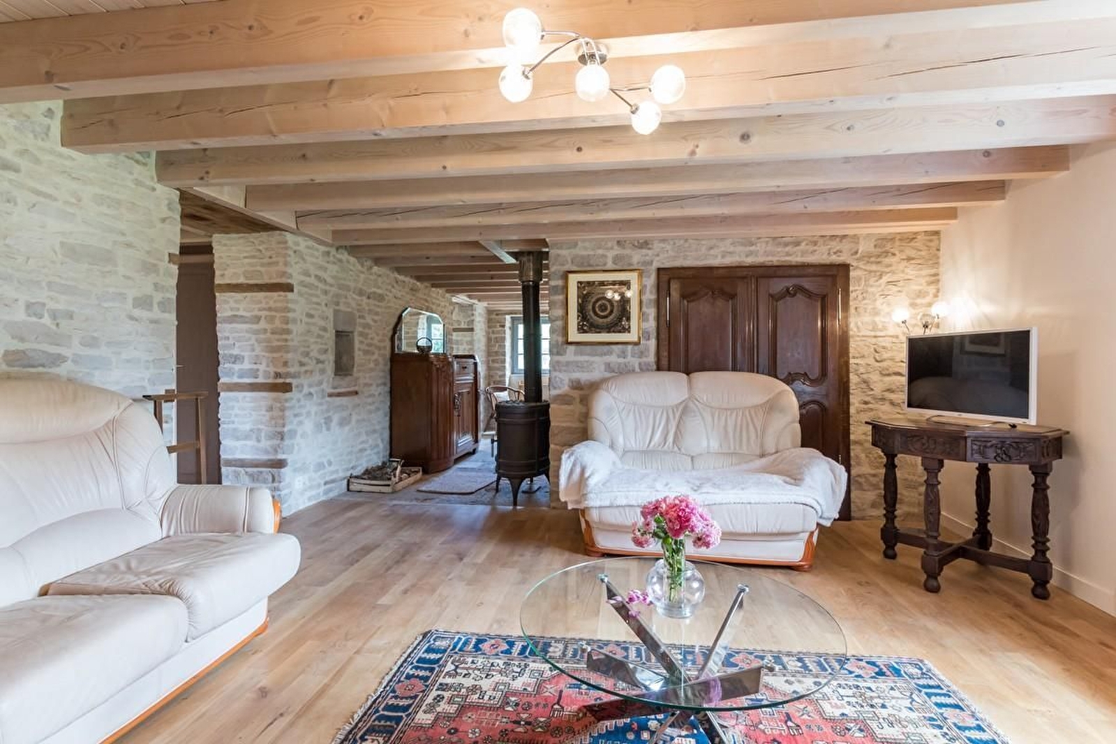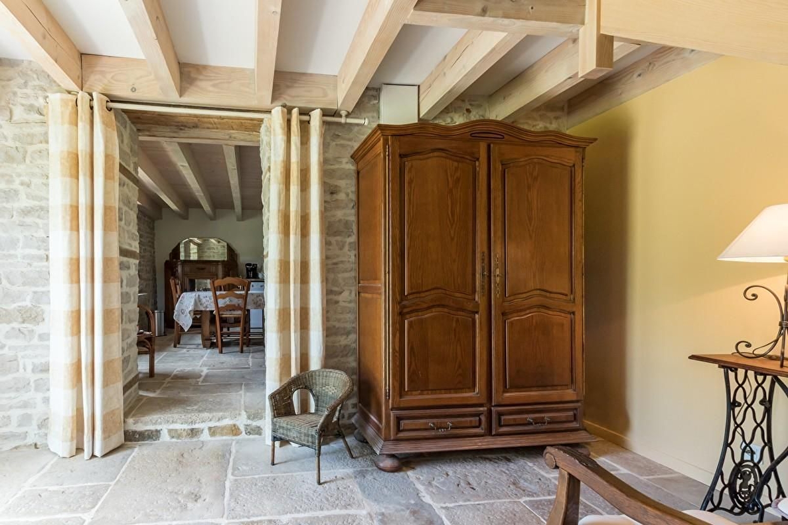 Au calme, dans la verdure, à l'entrée du village, ancienne fermette comtoise en pierres. Dans un parc non clos, le charme de la maison de campagne avec une terrasse couverte et un chalet pour vélos, poussette... Entièrement restaurée elle apportera la sérénité par son intérieur chaleureux, coloré et raffiné. Le gîte "la Charmille" est une jolie maison indépendante, sans vis à vis, proposant au rez-de-chaussée : hall d'entrée wc indépendant, cuisine équipée, salon TV écran plat, une chambre 2 personnes (1 lit 140/190) et sa salle d'eau (douche italienne, wc). À l'étage, 1 chambre avec 1 lit 140/190 , 1 chambre 2 lits 1 personne (90/200 jumelés), 1 salle d'eau (douche italienne, wc).