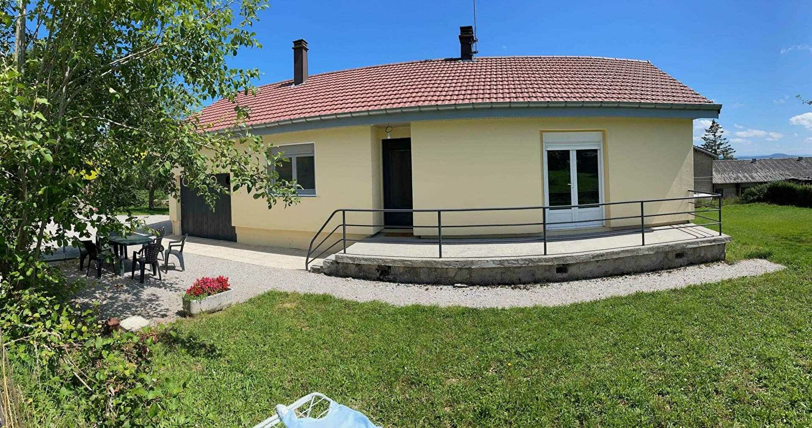 Maison indépendante de plain-pied entièrement rénovée à 5 km de Poligny. Elle se compose d'une cuisine intégrée toute équipée, d'un salon indépendant avec TV, canapé convertible et poêle à bois, d'une chambre avec 2 lits simples et sanitaires privatifs (douche et WC), d'une chambre avec 2 lits simples et d'une chambre avec un lit double, d'une salle d'eau avec cabine de douche et d'un WC indépendant. Garage avec lave-linge et possibilité de ranger des vélos ou motos. Côté extérieur : terrain attenant non clos, cour indépendante, terrasse, salon de jardin, barbecue, terrain de pétanque et balançoire. Chauffage central au fuel en partie compris. Bois fournis pour le poêle. Draps fournis à l'arrivée pour les séjours à la semaine, pour les locations au week-end, les draps peuvent être loués au tarif de 8 euros la paire. Gîte non fumeur. Accepte les chèques vacances.