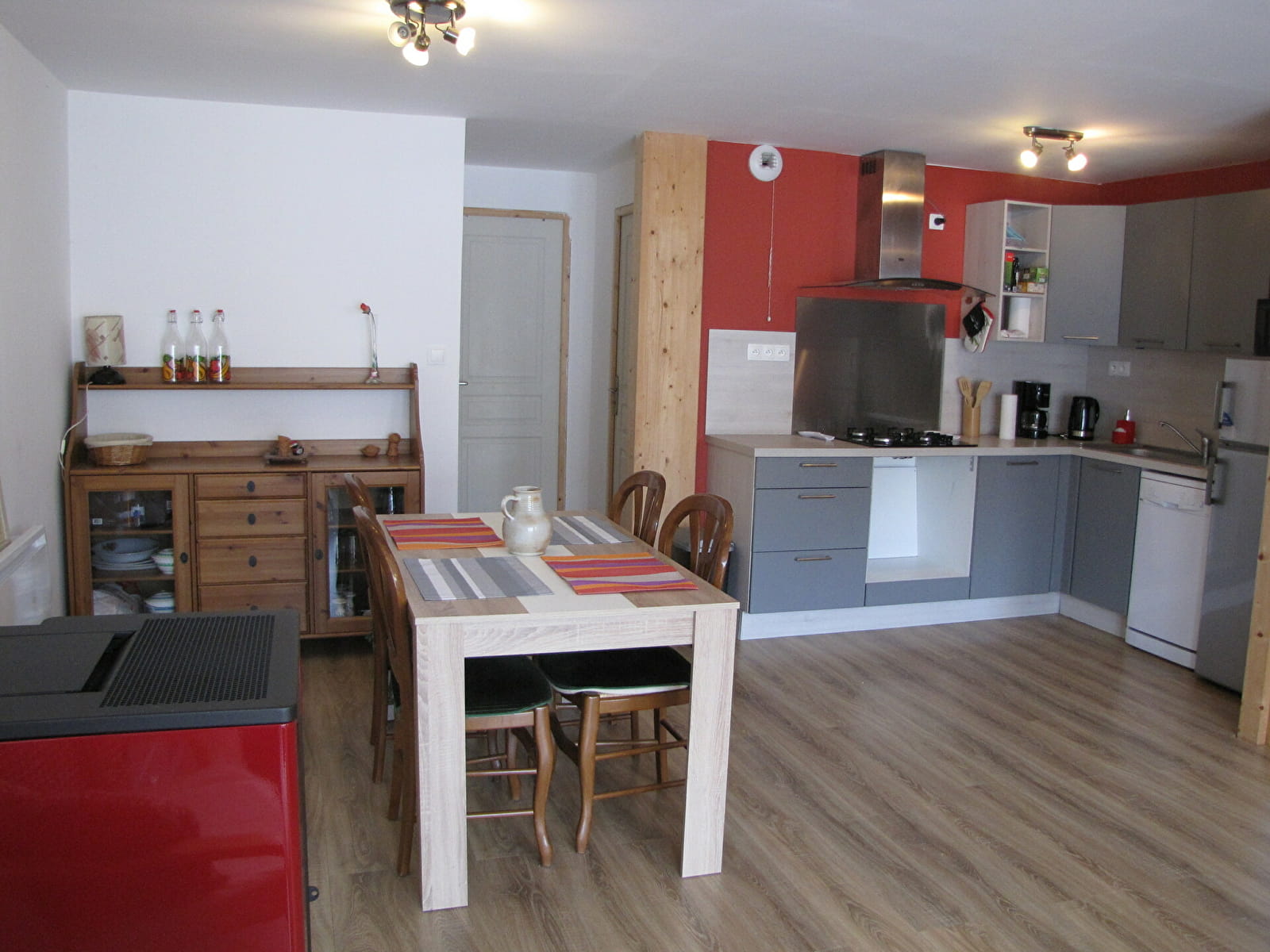 Grande pièce à vivre avec coin salon (télévision, DVD), salle à manger et cuisine équipée (lave-vaisselle, micro-onde,four, appareil à raclette/crêpe party )