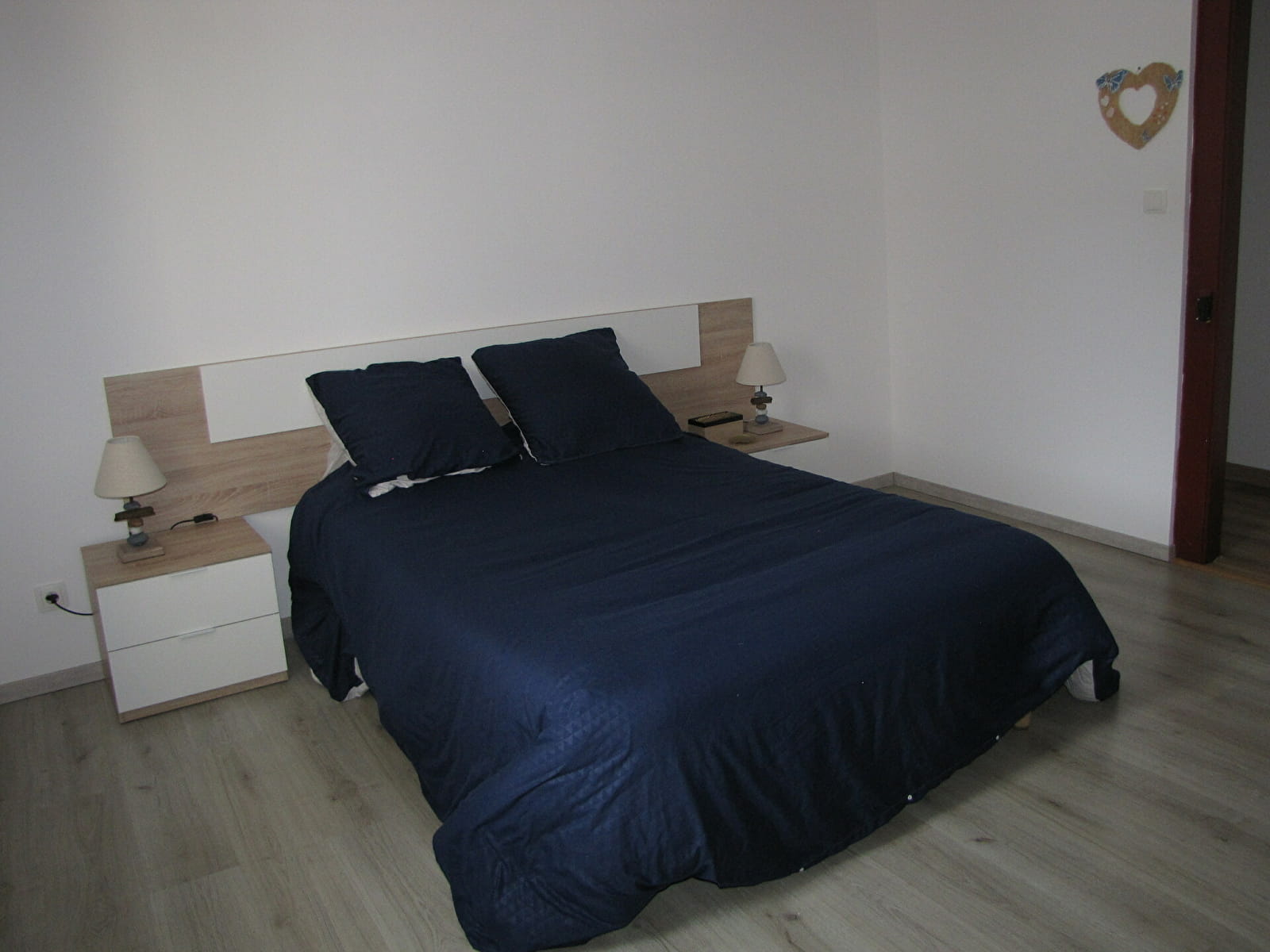 A l'étage, 1 chambre avec un lit double et 1 chambre avec 3 lits simple.