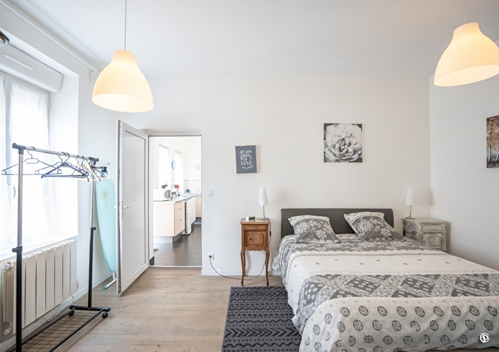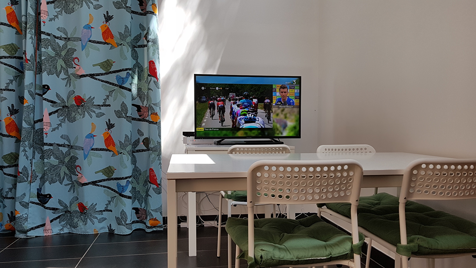 Grand séjour avec cuisine équipée permettant de préparer vous-mêmes vos repas (cafetière filtre, cafetière Senseo, vaisselle et ustensiles de cuisine, réfrigérateur, lave-vaisselle, plaques et four, micro-ondes, produits de nettoyage à disposition), table et chaises, TV écran plat avec Canal Satellite, petite terrasse abritée, lave-linge à disposition pour les séjours d’une semaine. Les lits sont faits à votre arrivée et une serviette de douche par personne est mise à disposition. Panier repas sur demande. Possibilité table d'hôte.
