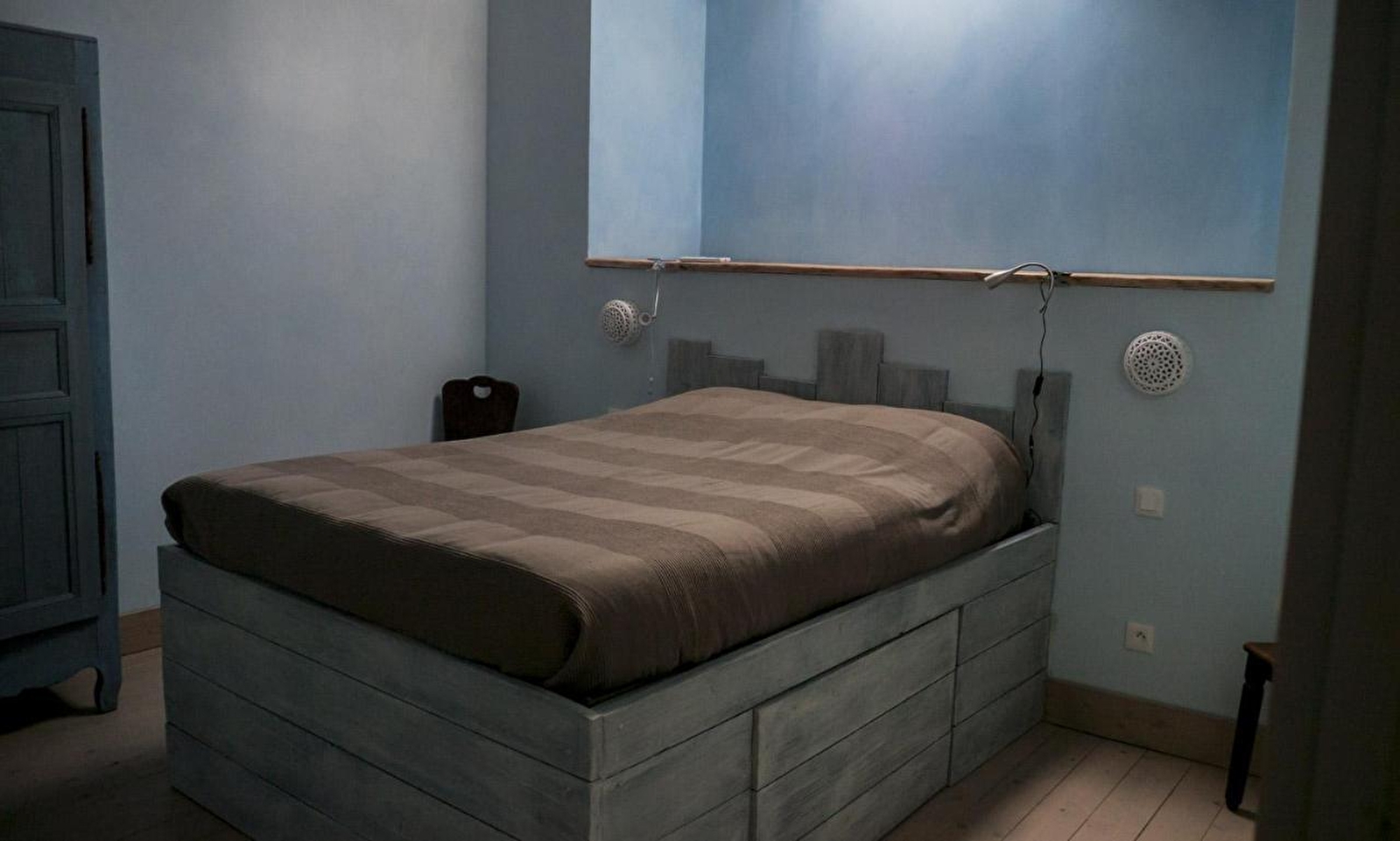 La cuisine et la chambre double, atypiques ont totalement été créées sur mesure afin de garder des éléments d’autrefois et s’adapter à la configuration des lieux.