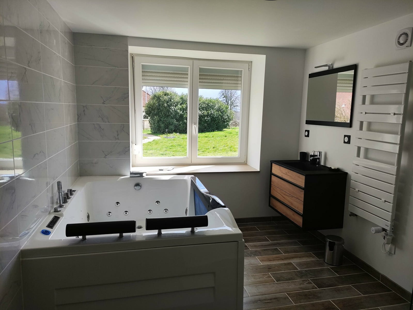 Salle de bain avec SPA 2 pers., douche avec ciel de pluie et chromo-thérapie. Toilettes séparées.