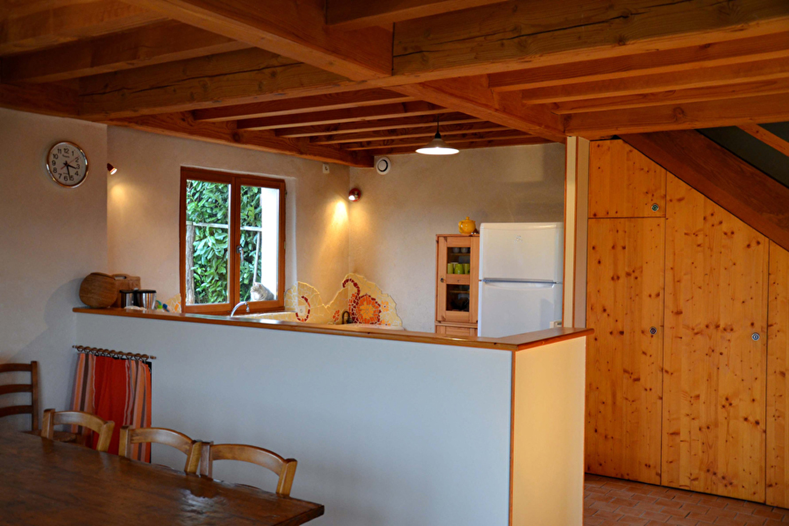 Dans un hameau calme et tranquille du clunisois, cette ancienne grange a été entièrement restaurée : couleurs douces et chaleureuses, murs enduits au chanvre et à la chaux. Au rez-de-chaussé : séjour avec salon, coin repas et cuisine, wc. A l'étage : 3 chambres (5 lits 90 cm dont 2 superposés, 1 lit 160 cm), salle d'eau, wc. Poêle à bois et convecteurs électrique. Grand jardin privatif non clos. A disposition : piano, guitare, ukulélé, djembé.