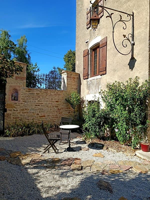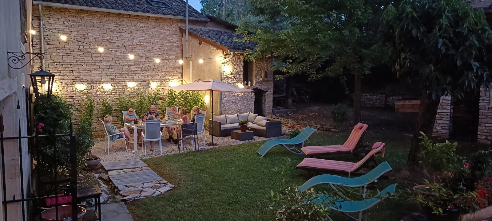 La cour intérieure éclairée par ses guirlandes, son espace détente, son coin repas vous invitent à vous poser, profiter et prendre le temps de vivre jusqu'au cœur des soirées d'été. Ici, tout est fait pour vous apporter détente, dépaysement et joie de vivre.
