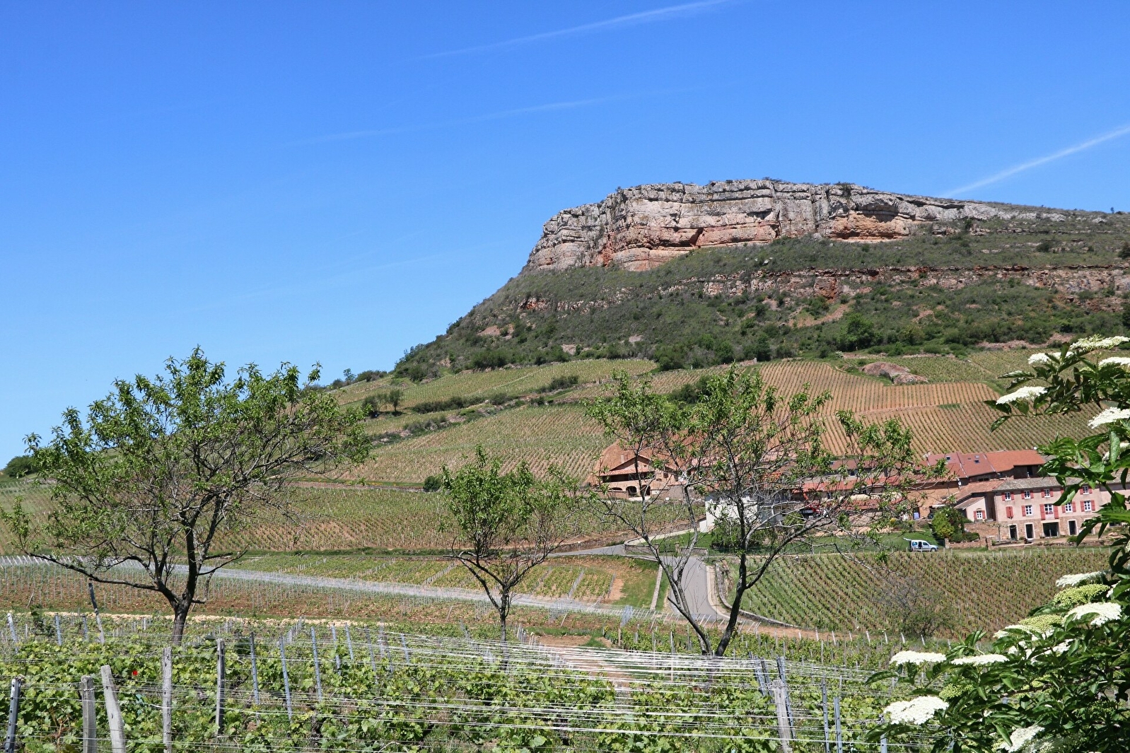 A Vergisson, village typique du vignoble Mâconnais, ancienne maison de vigneron avec vue exceptionnelle sur les roches de Solutré et de Vergisson.