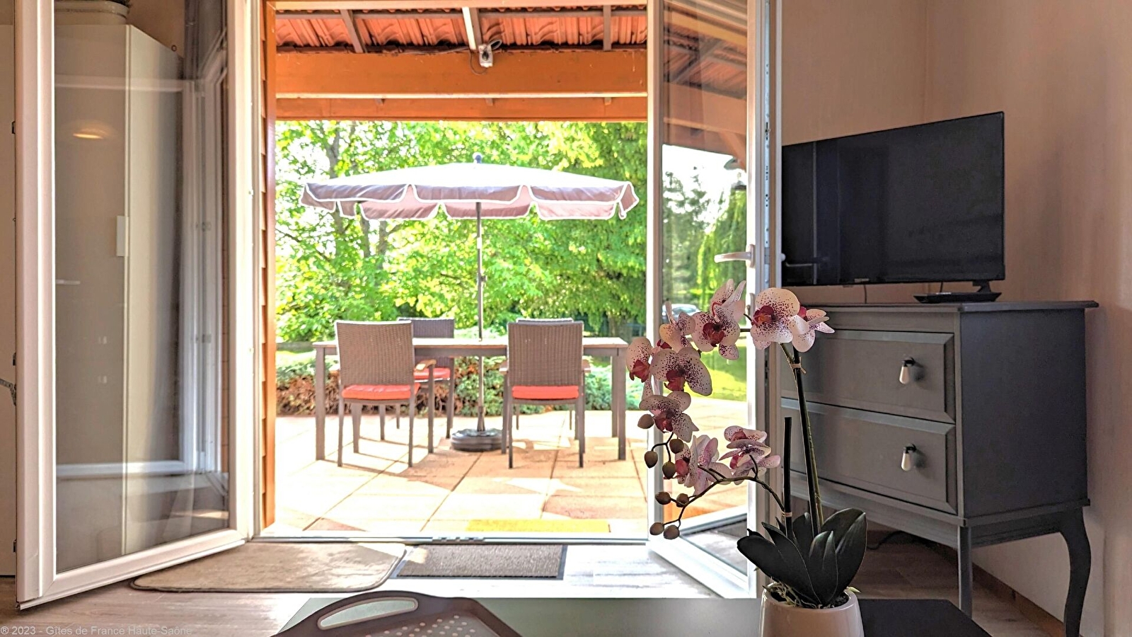 Situé sur le même terrain que la maison des propriétaires, vous disposez toutefois d'un espace de verdure individuel, d'un accès en voiture indépendant et clôturé. La végétation et le brise vue vous assurent l'intimité de votre séjour.