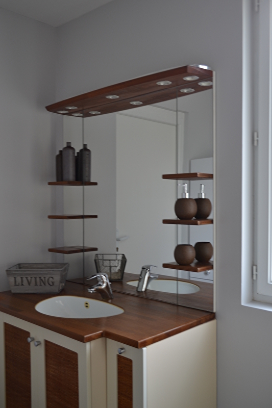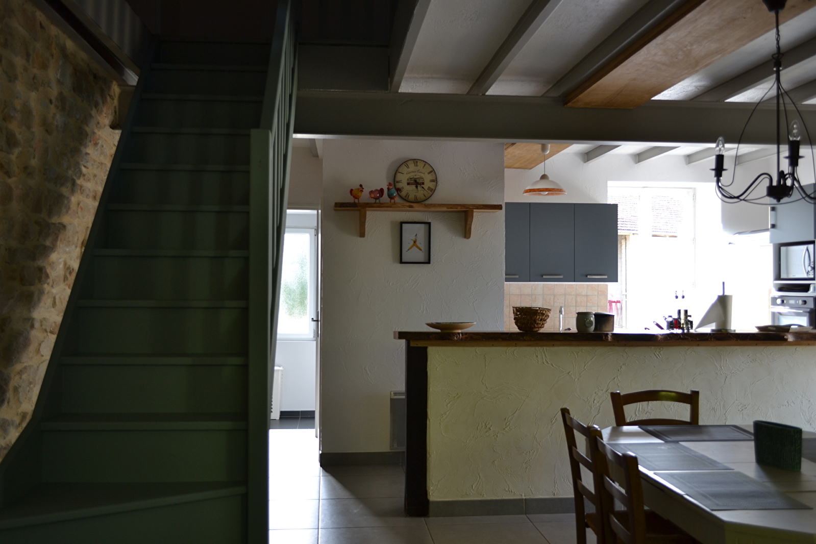 Au rez-de-chaussée : cuisine ouverte sur la pièce à vivre, salle de bain avec douche à l'italienne et WC séparés (et aussi 1 à l'étage).