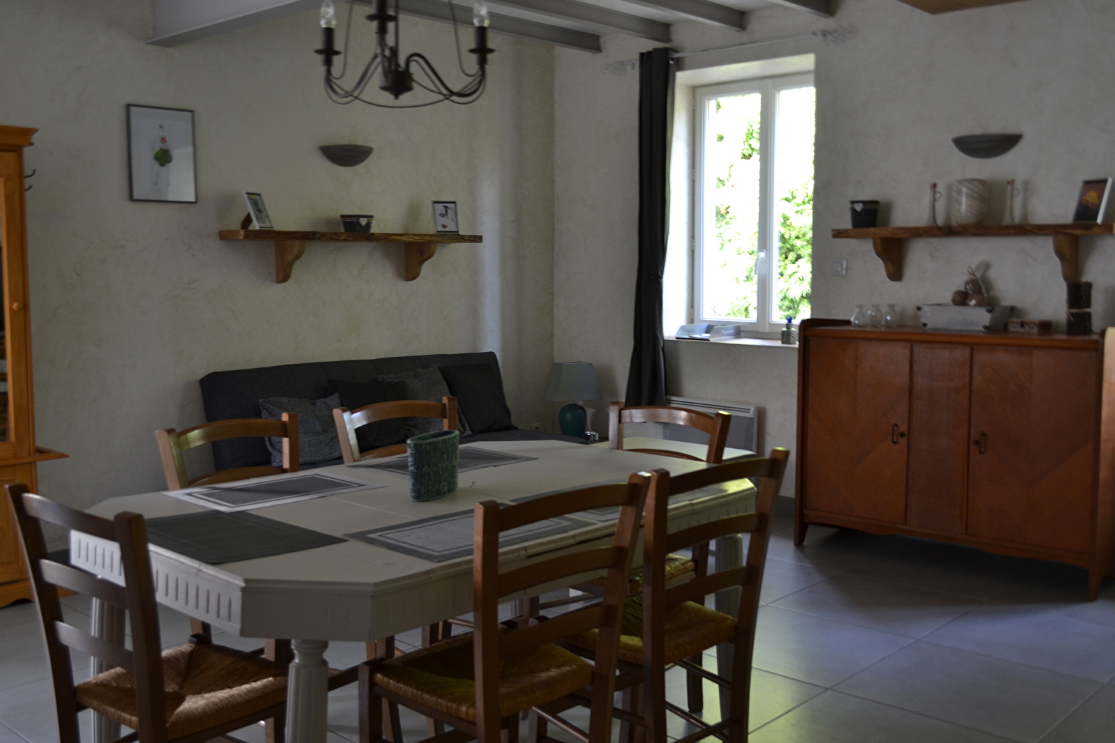 Gîte de campagne de 90 m² entre Mâcon et Le Creusot. Localisé sur une propriété privée, dans une impasse, vous y trouverez calme et tranquillité. Le gîte est composé de 2 chambres à l'étage pouvant accueillir 5 personnes (6 pers maximum) : une chambre avec un lit double et un lit simple, une autre chambre avec deux lits simples, un espace commun avec un canapé convertible.