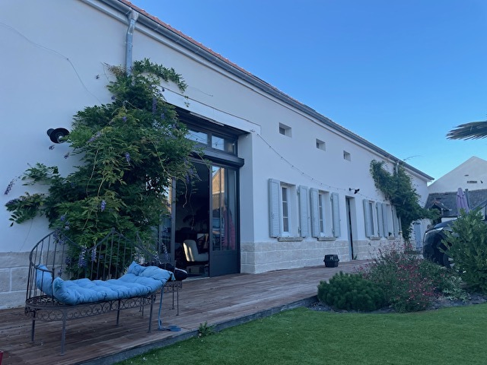 2 salles de bain dont une avec baignoire. Un parking extérieur fermé dans l'enceinte de la propriété pour 2 voitures. Un petit terrain de pétanque. Grande cuisine.