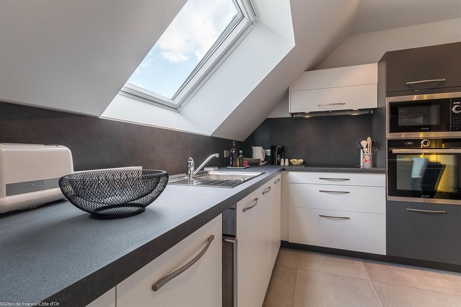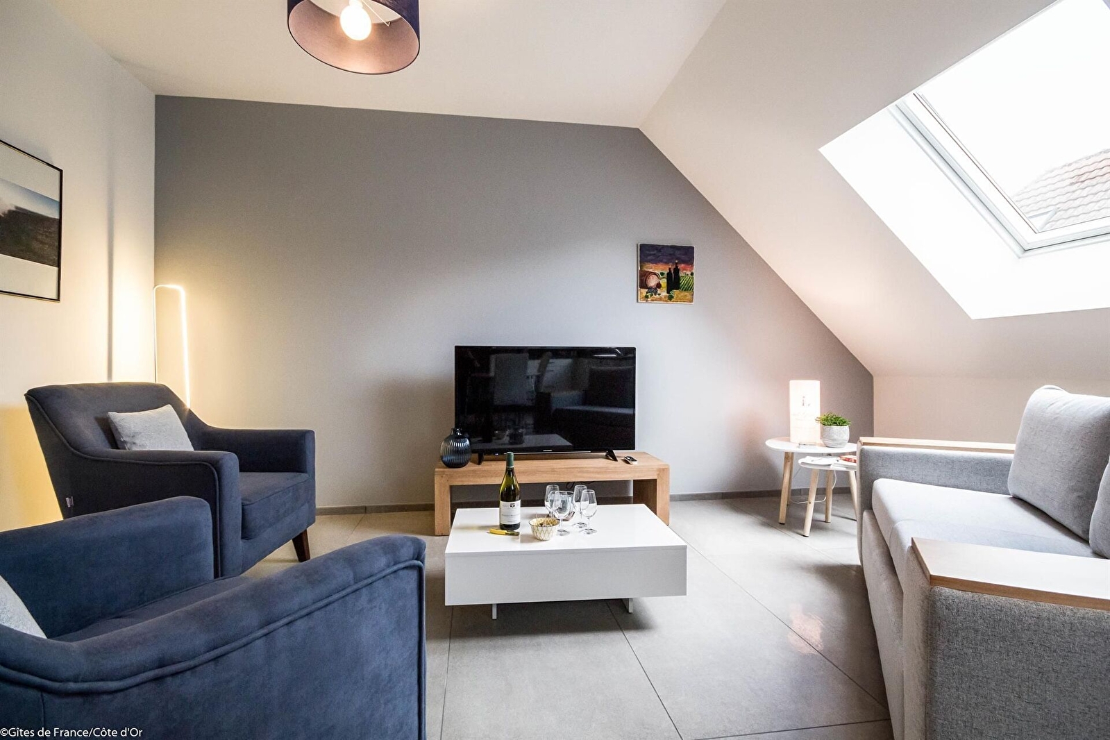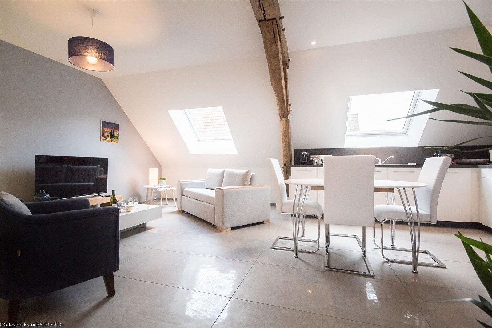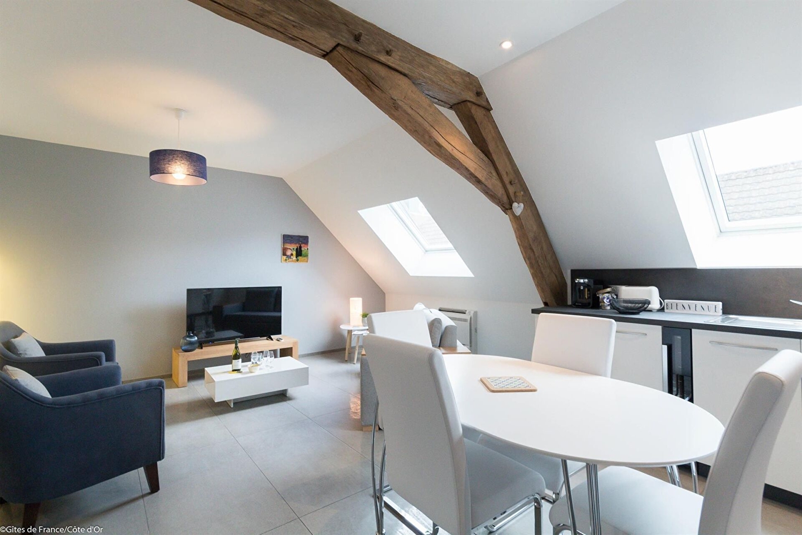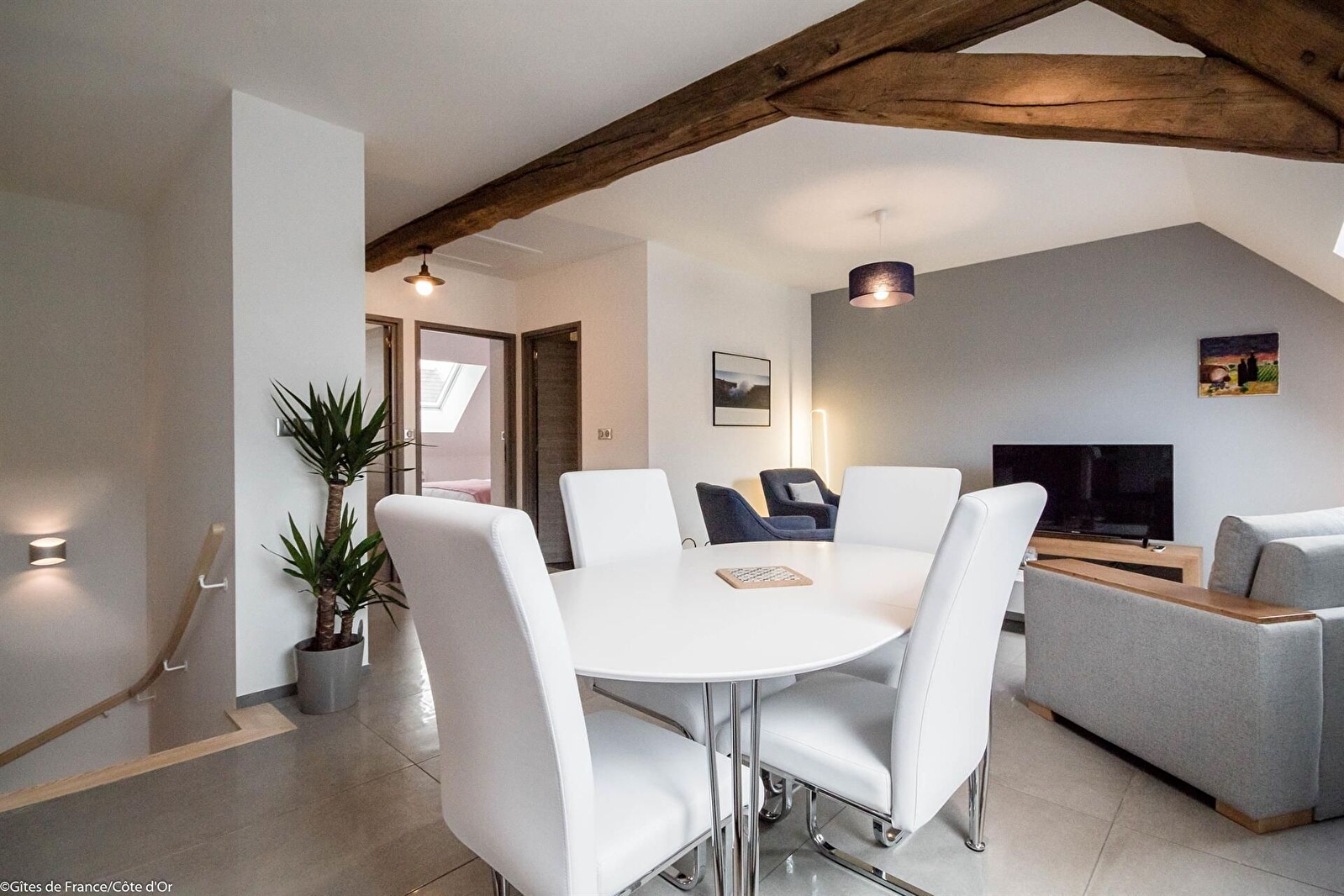 Dans une ancienne maison vigneronne au cœur du célèbre vignoble de Puligny-Montrachet, le Patio offre 3 beaux appartements entièrement rénovés avec des matériaux haut de gamme. Le Gîte Les Combettes se situe au 2ème étage et dispose d'un beau séjour ouvert avec cuisine toute équipée, salle à manger et salon. 2 chambres avec chacune un lit 160. Salle d'eau avec large douche. WC séparé. Au rez-de-chaussée : entrée et buanderie communes avec les 2 autres gîtes. Possibilité de les louer ensemble pour 10 personnes. Climatisation réversible.