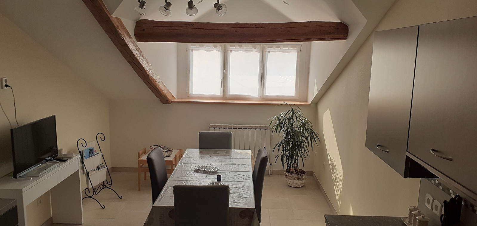 Au cœur de la Vallée du Doubs, à Médière, entre Montbéliard et Besançon, Michèle vous accueille dans son charmant corps de ferme du 19ème siècle « Les Coquelicots ». Vous serez très vite séduit par la chaleur des lieux portée par des matériaux travaillés et choisis avec soin : bois, pierres apparentes, tissus précieux… ambiance cocooning garantie ! Disposant d’une terrasse et d’un jardin privé, vous pourrez profiter des extérieurs dans le calme de la campagne franc-comtoise.