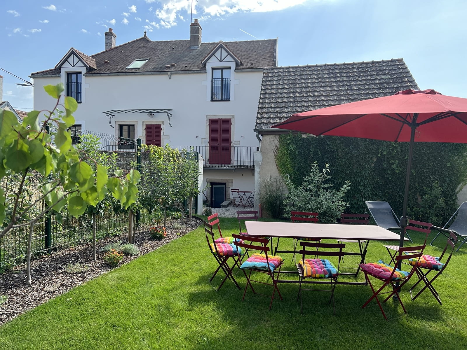 Dotée d’une cour et d’un jardin clos attenant, la maison principale peut accueillir 9 personnes. Un studio indépendant permet de loger 2 personnes de plus.