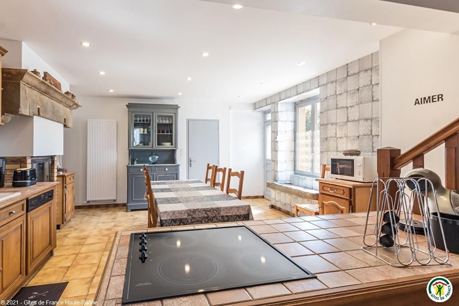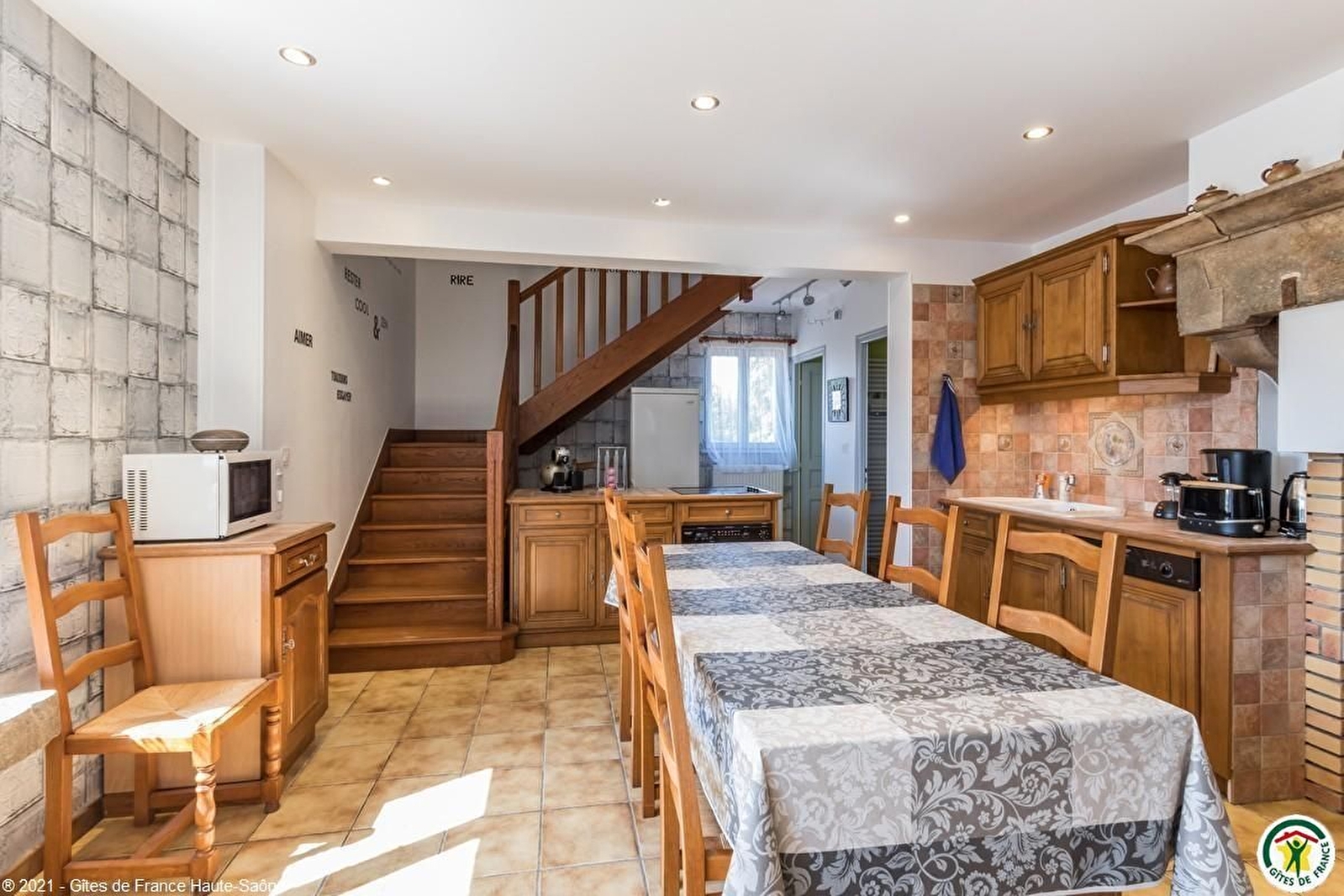 Au cœur d'un charmant village se trouve le gîte Les Roblets, une maison indépendante entièrement rénovée. Au rez-de-chaussée, vous trouverez une cuisine équipée avec un insert à bois, un salon confortable avec canapé de qualité, TV écran plat et lecteur DVD donnant sur une terrasse, ainsi qu'une salle d'eau avec douche et un WC séparé. À l'étage, une mezzanine/coin lecture avec canapé, fauteuil et bibliothèque vous attend, ainsi qu'une deuxième salle d'eau avec douche et baignoire, un WC indépendant, une chambre avec deux lits simples (90x200) et une chambre avec un lit double (160x200). Le gîte dispose également d'un garage avec un atelier vélo, d'un jardin entièrement clôturé, d'une terrasse équipée d'un salon de jardin, d'un barbecue, d'un parasol et de transats. Le chauffage est assuré par un système à granulés bois, et un rafraîchisseur d'air est disponible sur demande en été. Les charges sont incluses, ainsi que le linge de maison (draps, linge de table et de toilette). Une caution ménage de 60 € est demandée. Les amateurs de pêche seront ravis de savoir que le gîte est labellisé Pêche ! Dans la Vallée de la Saône, vous pourrez explorer les chemins de halage, le tourisme fluvial et les ports de plaisance, ainsi que visiter la verrerie de Passavant-La-Rochère ou le site gallo-romain de Jonvelle. À seulement 30 minutes, Vesoul offre son centre historique, le parc aquatique Ludolac et le musée Georges Garret. À proximité, vous découvrirez également le château de Bougey, l'église et le lavoir, et Jussey est à seulement 7 km. De nombreuses randonnées sont possibles autour d'un lac ou en forêt. Le gîte est labellisé Accueil Motards et Accueil Vélo, avec un espace pour ranger et réparer les vélos, ainsi que des informations sur les circuits vélo (à noter que les vélos ne sont pas fournis). Les thermes de Bourbonne-Les-Bains sont également à 30 minutes.