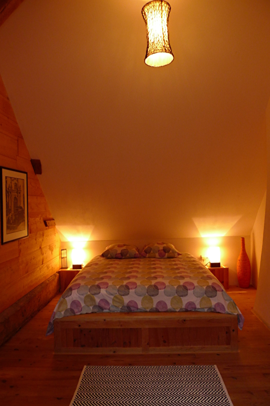 Au 1er étage: chambre ouverte (lit double et lit simple), bibliothèque, télévision, lecteur DVD musique et chambre lit double.