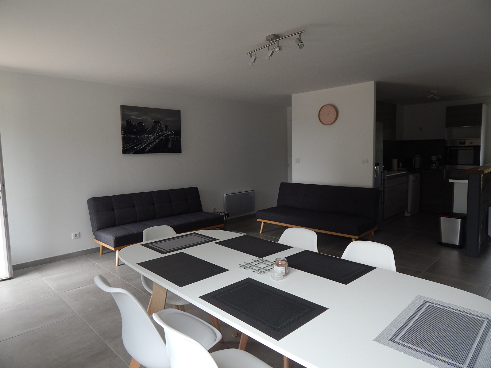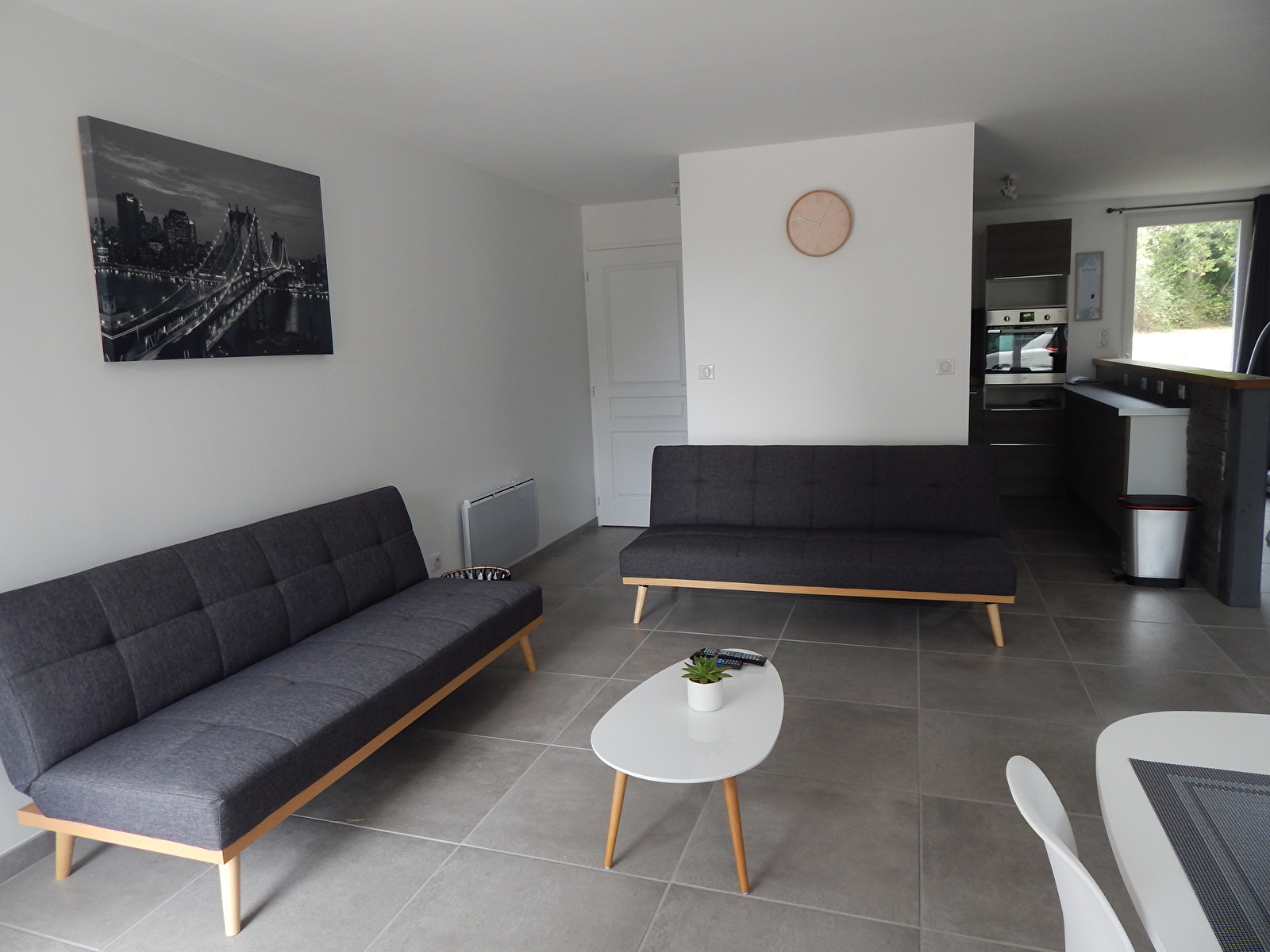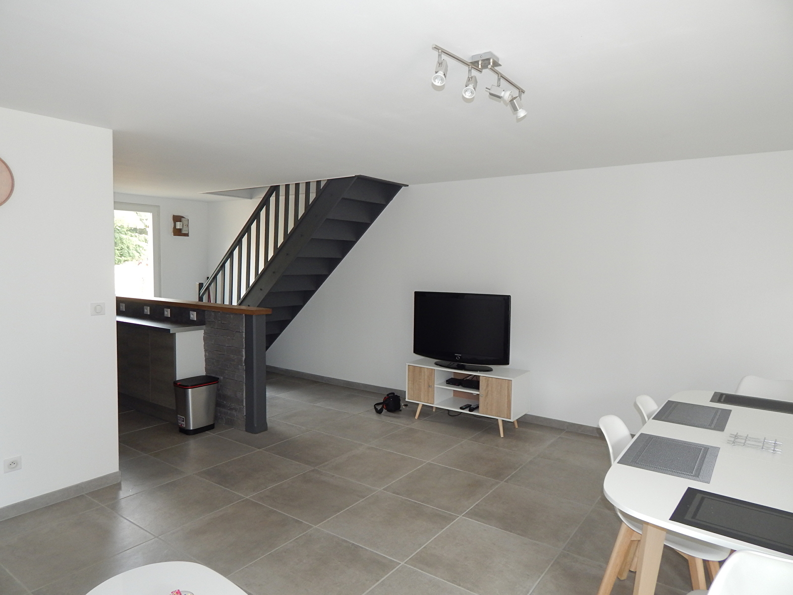 Le gîte est composé: au rez de chaussée, d'une cuisine ouverte sur la pièce à vivre (canapé convertible pour 2 personnes) et d'un W.C.