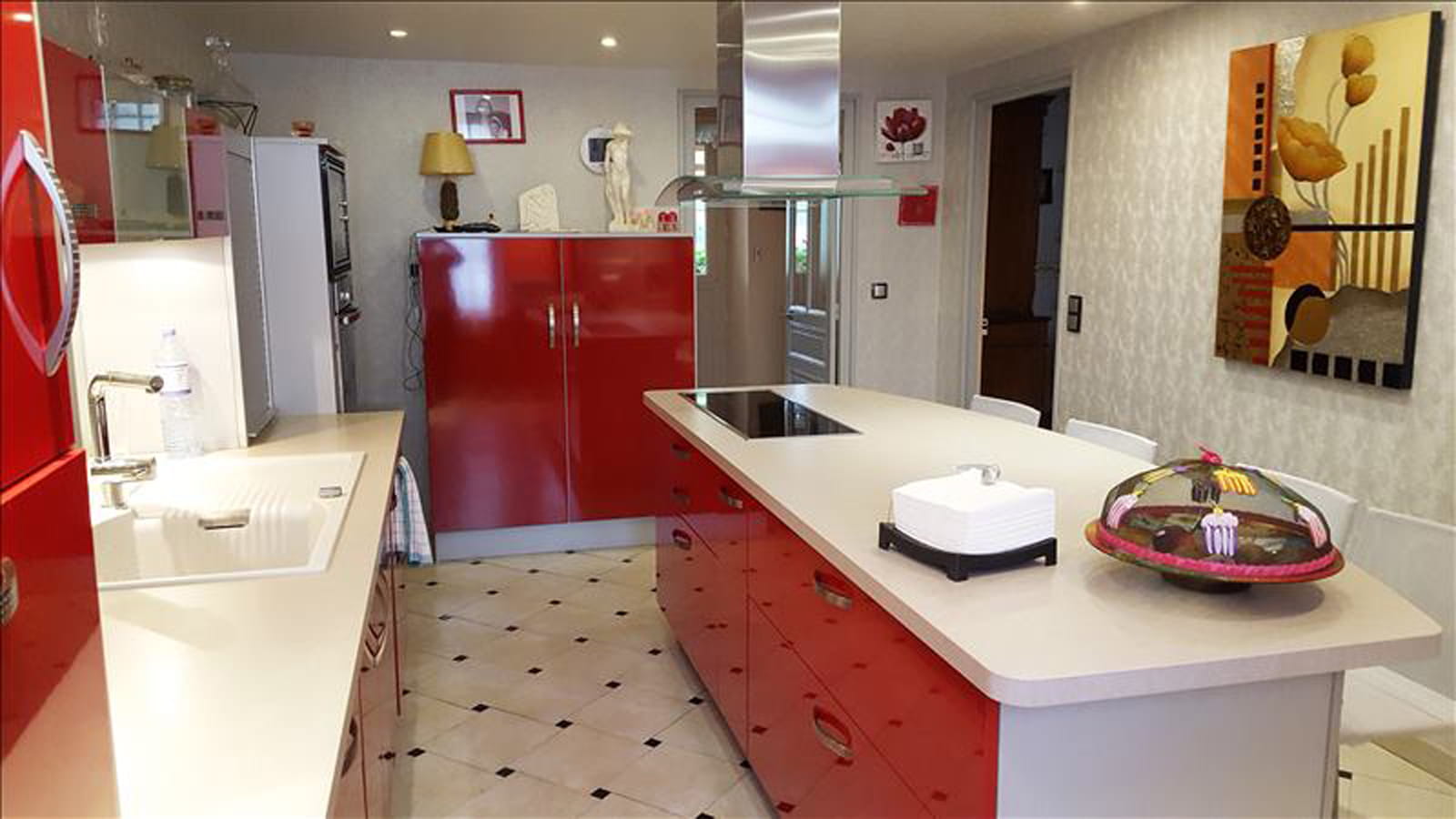 - Cuisine équipée (frigo américain) avec un ilot central, Plaques Inductions, Four, Micro-ondes, Machine à café Senséo, Bouilloire, Actyfree, Cookéo, Robot KitchenAid, Lave-Vaisselle, Grille-pain, vaisselle complète…