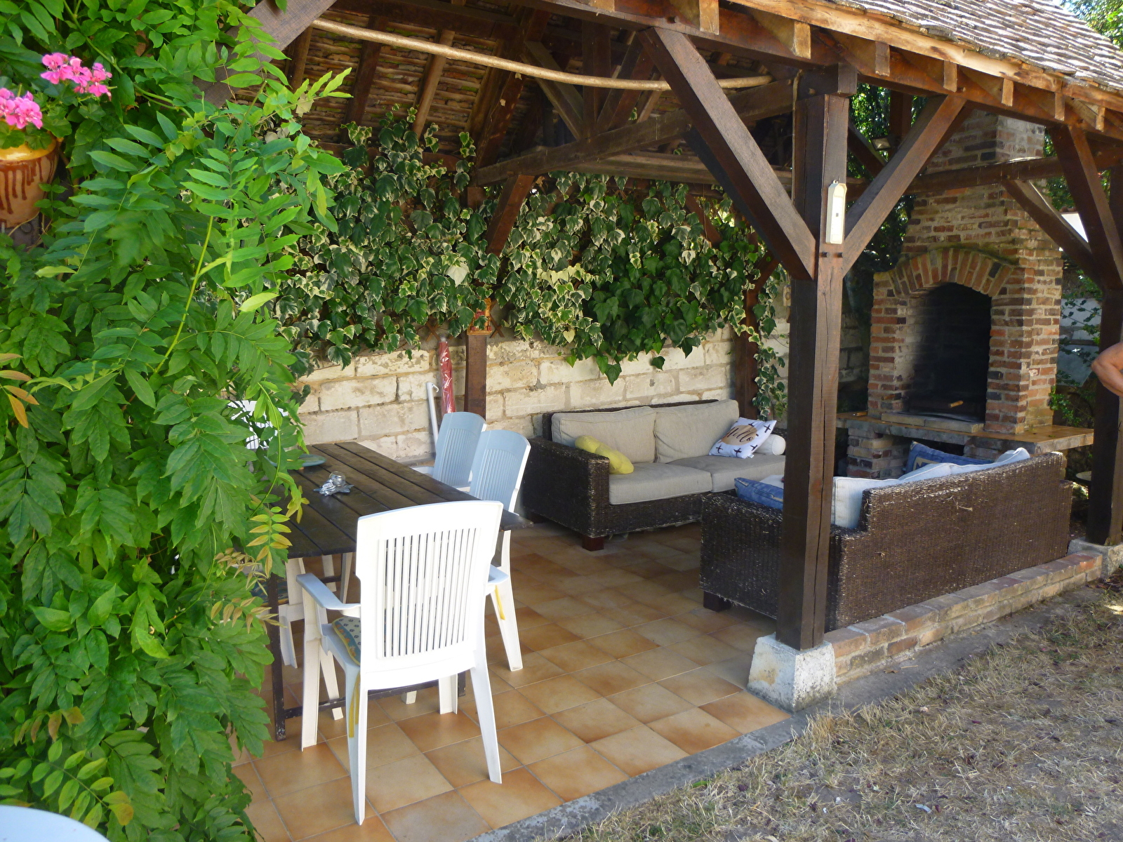 A l'extérieur, le jardin est clos avec une tonnelle, le barbecue et un salon pour les douces soirées d'été.