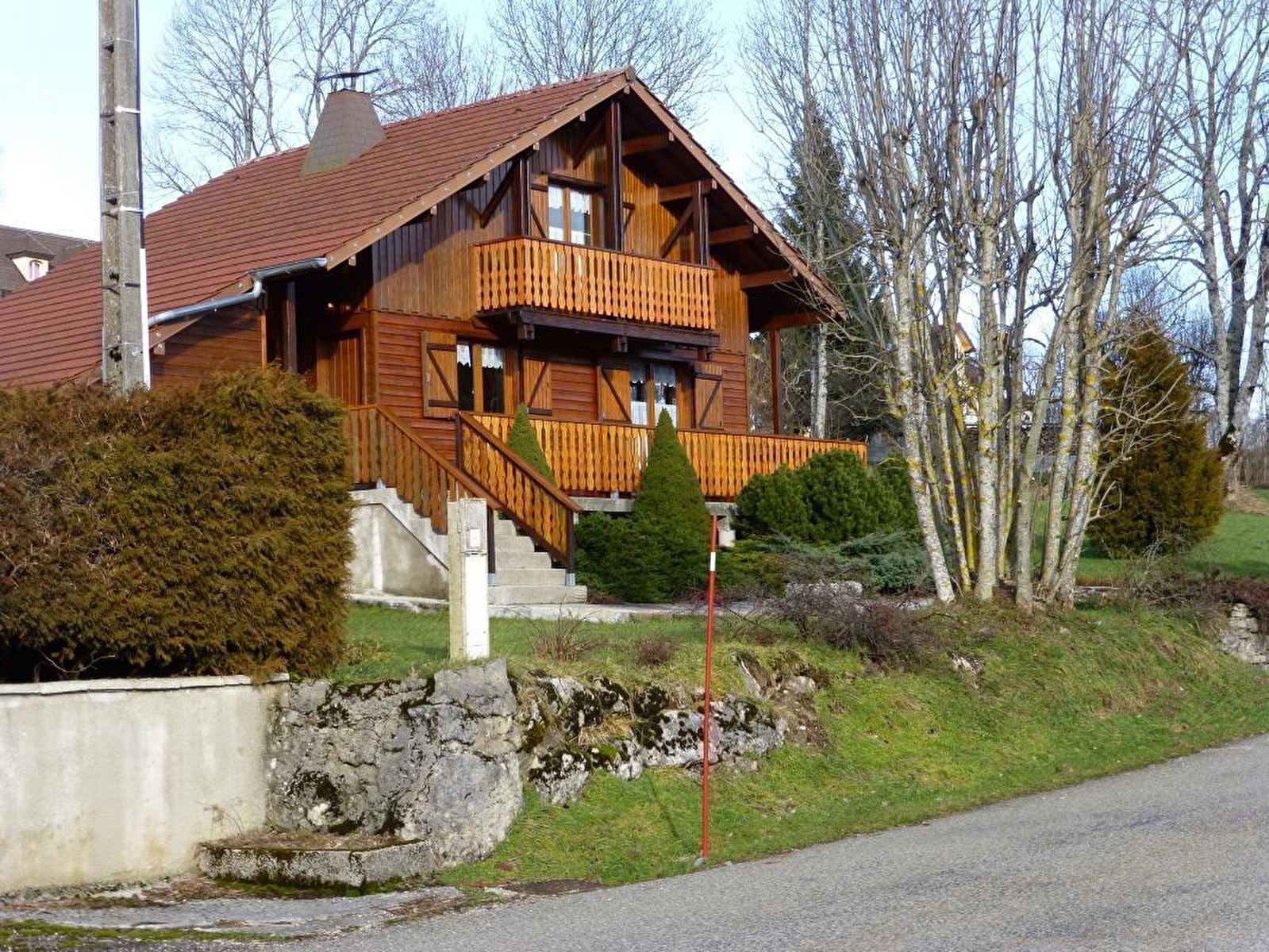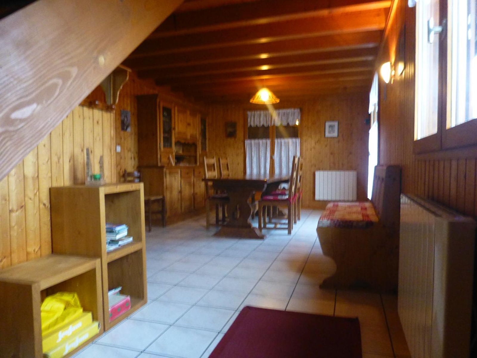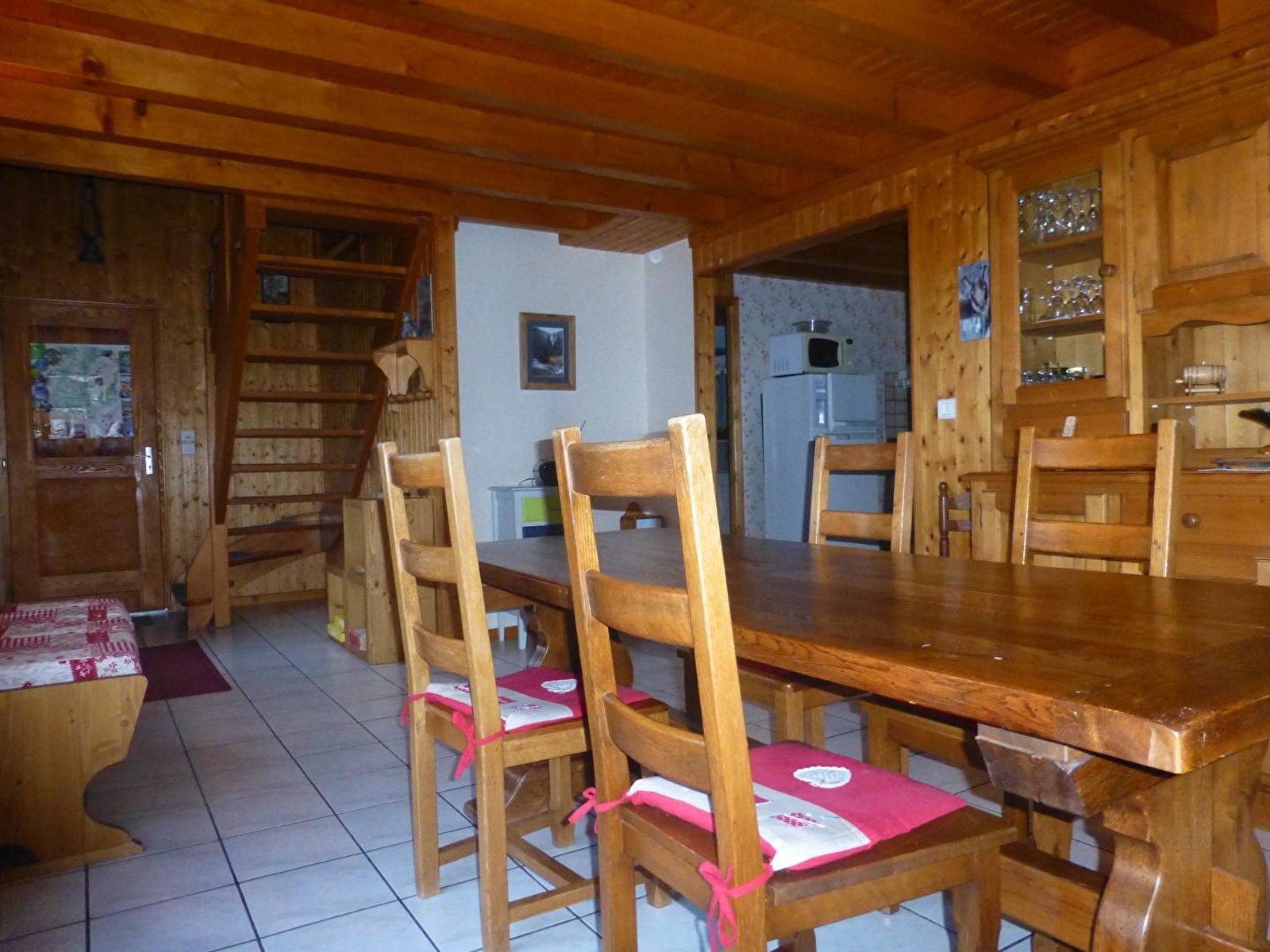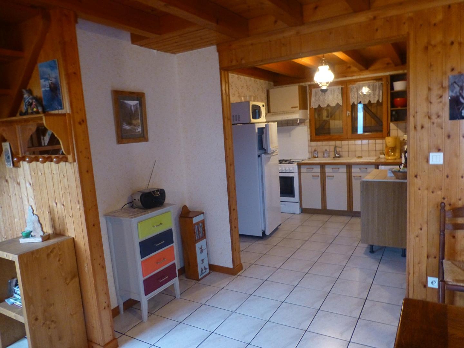 Chalet indépendant avec garage fermé. Au rez de chaussée: cuisine, séjour, salle d'eau, wc indépendants. une chambre avec un lit 2 places. A l'étage: mezzanine: salon, une chambre avec 1 lit 2 places et 2 lits 1 place, terrain attenant non clos, cour, salon de jardin, barbecue. Chauffage électrique. Toutes charges comprises juillet/août. Parking privé sur place.