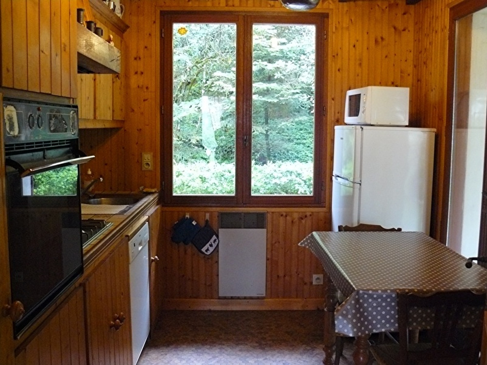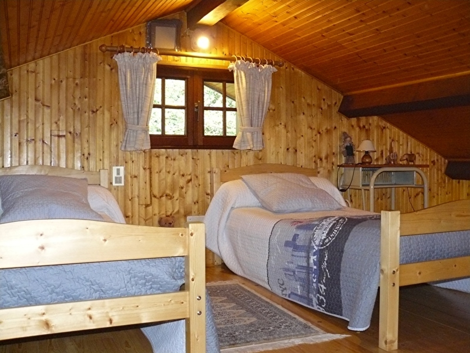 Maison indépendante avec au rez-de-chaussée: ch1: 1 lit 2 pl. Au 1° étage: cuisine, séjour-salon, ch2: 1 lit 2 pl, mezzanine pouvant accueillir 2 couchages enfants avec 2 lits 1 pl, salle d'eau. Cour et jardin privés non clos, salon de jardin, barbecue. Chauffage élec. et bois (bois fourni gratuitement). Charges non comprises. Ce gîte peut accueillir maximum 4 adultes et 2 enfants.