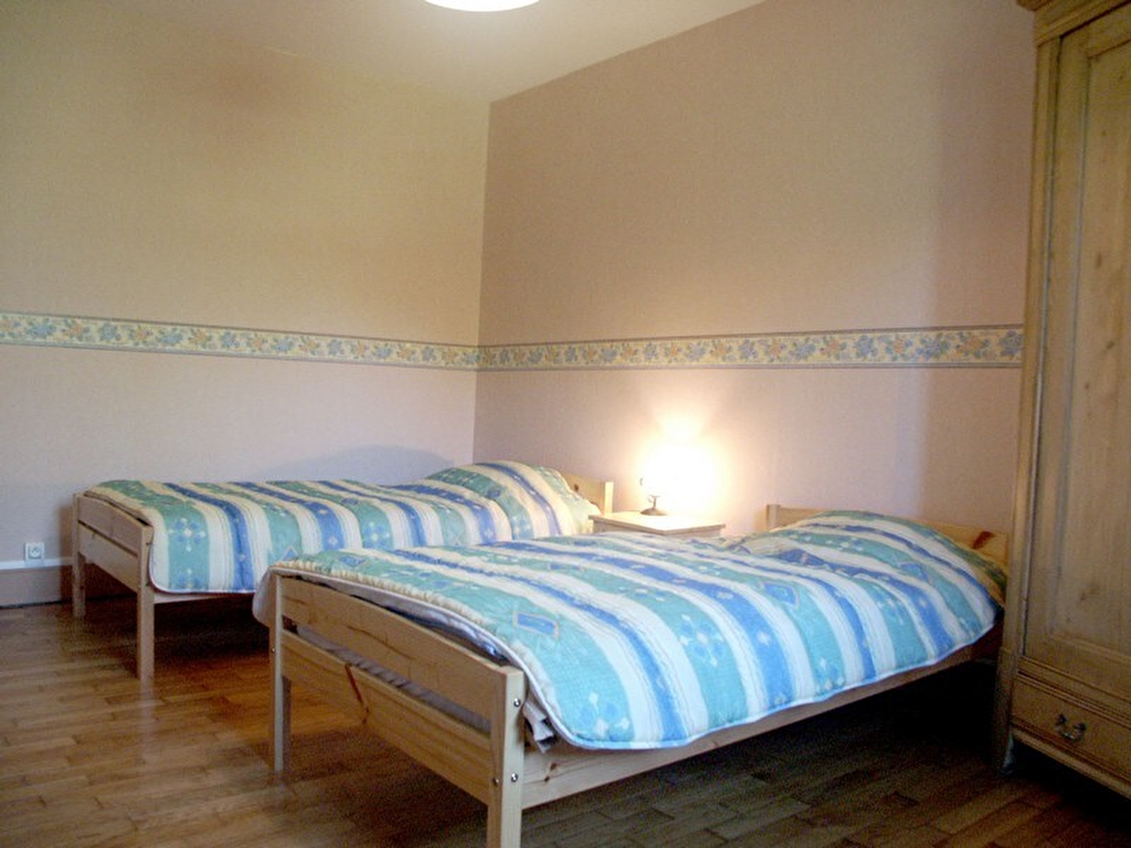 Sur les hauteurs de Salins Les Bains, en pleine campagne au calme, logement au rez de chaussée, cuisine-séjour, salon, canapé convertible, salle d'eau, wc indépendants. ch1: 1 lit 2 pl, ch2: 2 lits 1 pl, terrain attenant clos, cour, salon de jardin, barbecue. Chauffage central. Toutes charges comprises. Lit et chaise bébé à disposition. Accès wifi gratuit. Tarif curiste pour tout séjour de 3 semaines consécutives (hors juillet / août). Caution pour l'animal : 300€. (Seuls les chiens sont acceptés, pour les autres sur demande auprès des propriétaires).