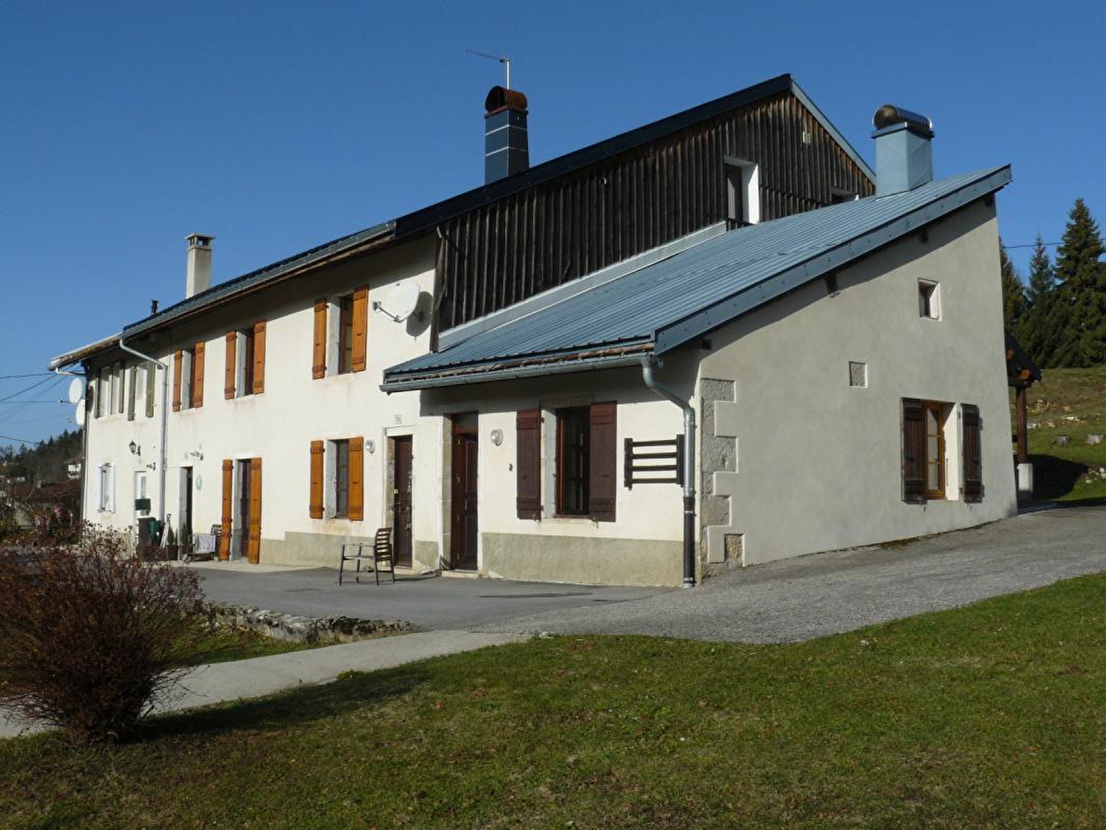 Logement à l'étage. Séjour, coin-cuisine, salon, canapé convertible, ch1: 1 lits 2 pl (160cm), ch2: 1 lit 2 pl et 2 lits 1 pl superposés, salle de bains, salle d'eau, terrain attenant non clos, salon de jardin, barbecue, parking privé déneigé. Chauffage électrique. Toutes charges comprises en été.