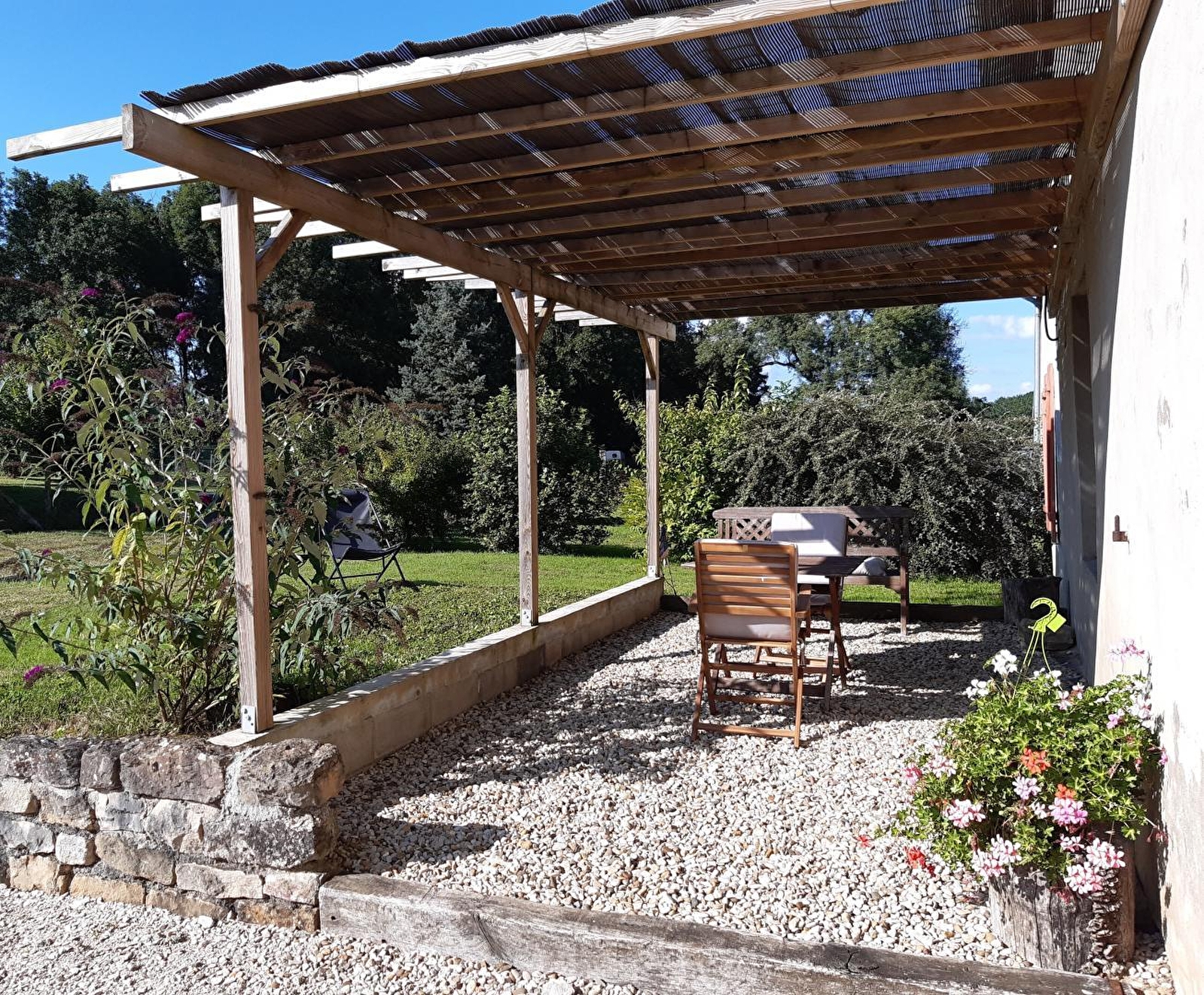 Maison mitoyenne indépendante, séjour-salon-coin cuisine entièrement équipée neuve, canapé convertible, salle d'eau avec douche à l'italienne, WC indépendant et une chambre avec un lit 2 personnes, chauffage électrique, cour, salon de jardin, barbecue, terrain attenant non clos. Les linges de toilette sont fournis ainsi que les draps. Lits faits à l'arrivée. Possibilité d'accueil de cavaliers, pré, box. Toutes charges comprises. Tarifs dégressifs pour location de plusieurs semaines : contacter les propriétaires. Animaux acceptés gratuitement à la condition que les chiens ne restent pas seuls dans le gîtes.