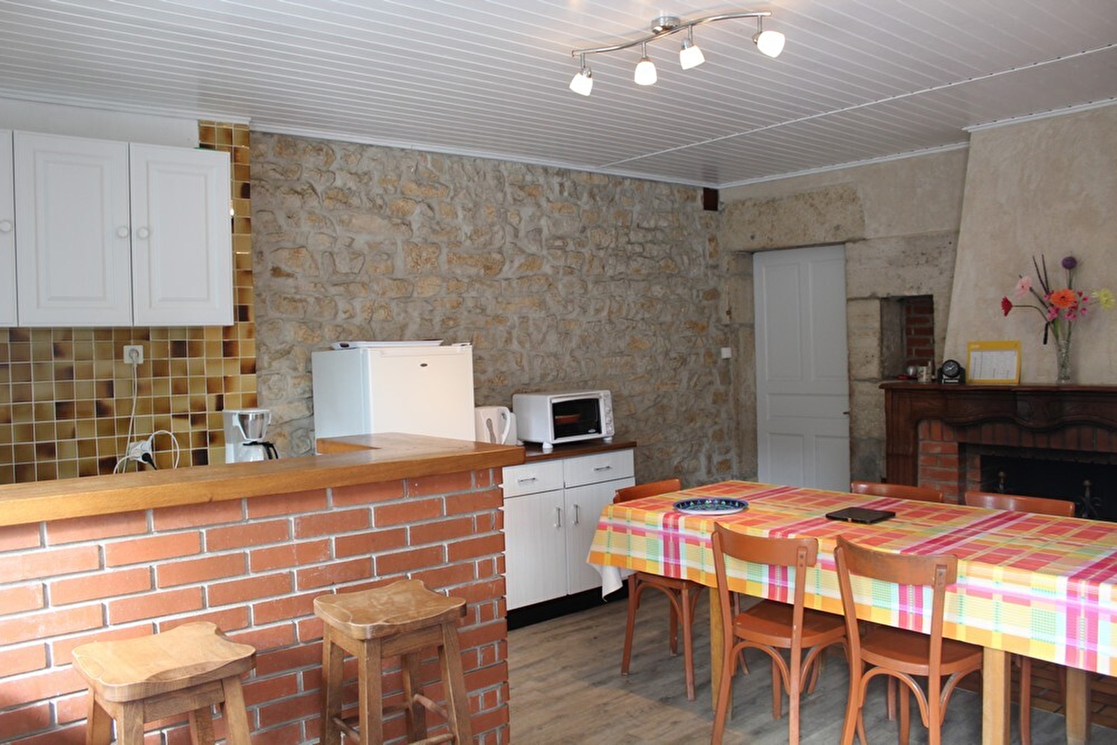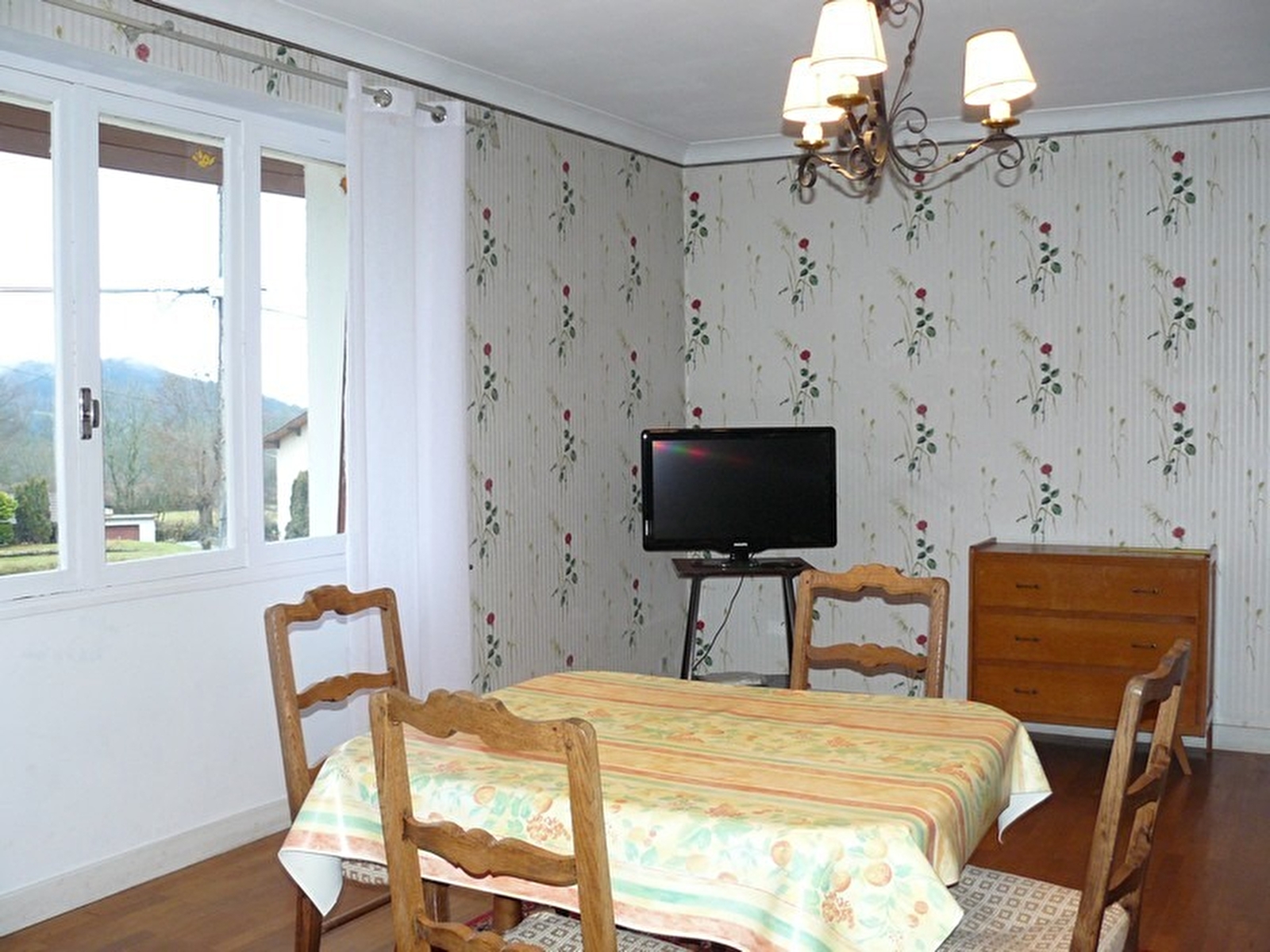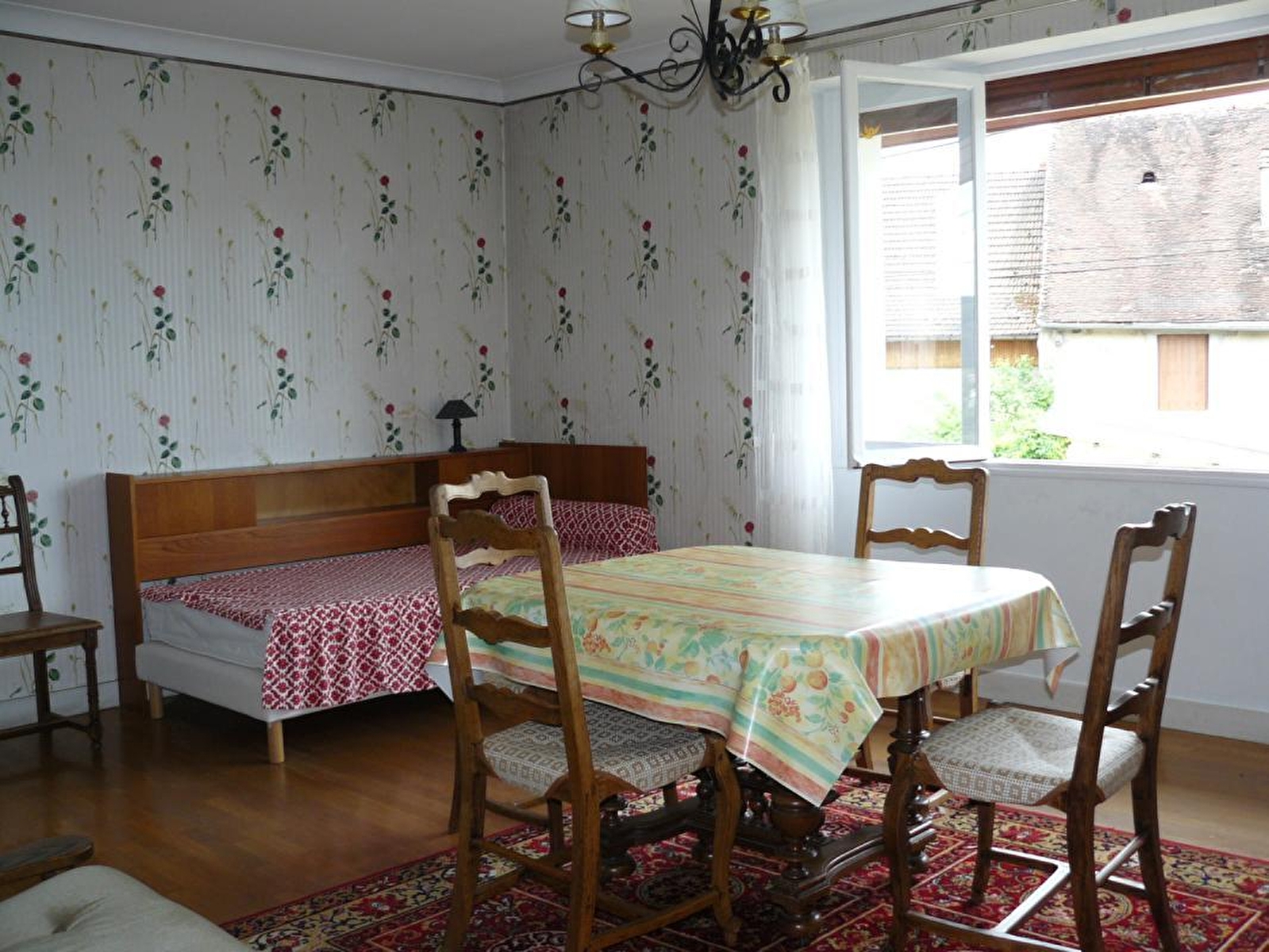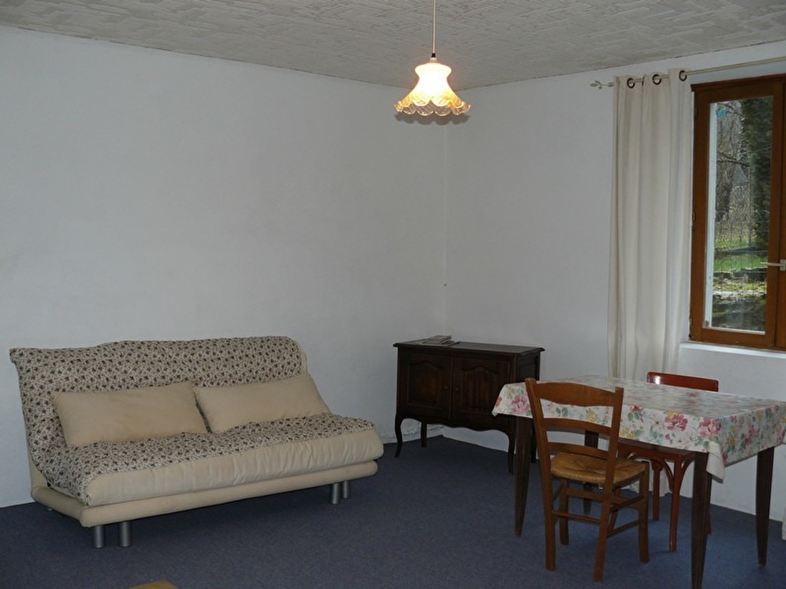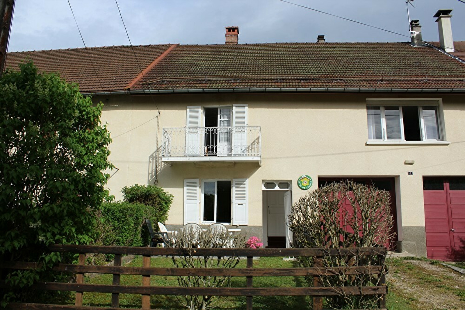 Maison mitoyenne. Au rez de chaussée: cuisine, chambre avec 1 lit 2 places. Salle d'eau et wc indépendants (dans le garage). A l'étage: une chambre 1 lit 2 places, et une chambre avec 2 lits 1 place et salon avec un lit de 90cm. Salle d'eau (baignoire sabot), wc indépendants, terrain attenant clos, cour, salon de jardin, barbecue. Chauffage bois et électrique. Toutes charges comprises en juillet août. Parking privatif sur place. Possibilité de pratiquer le canoë-kayak sur place dans la rivière de l'Ain.