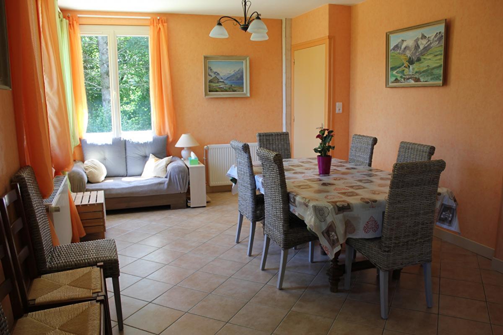 Maison indépendante à 600m du lac de Chalain. 1er niveau par 6 marches extérieures. Grande cuisine entièrement équipée, salon indépendant avec TV, bibliothèque et banquette BZ, CH1: 1 lit 2 pl, salle d'eau, wc séparé. A l'étage, CH2: 2 lits 1 pl et petite alcôve avec 1 lit 2 pl, CH3 : 1 lit 2 pl et petite alcôve avec 2 lits 1 pl, balcon avec vue sur le lac. Salle de bains avec wc. Terrain attenant clos, jardin arboré, terrasse avec salon de jardin et barbecue. Table de ping pong. Équipement bébé sur demande. Possibilité de location de draps (14€/paire). WE et courts séjours de 350€ à 550€. Forfait ménage obligatoire d'un montant de 80 euros