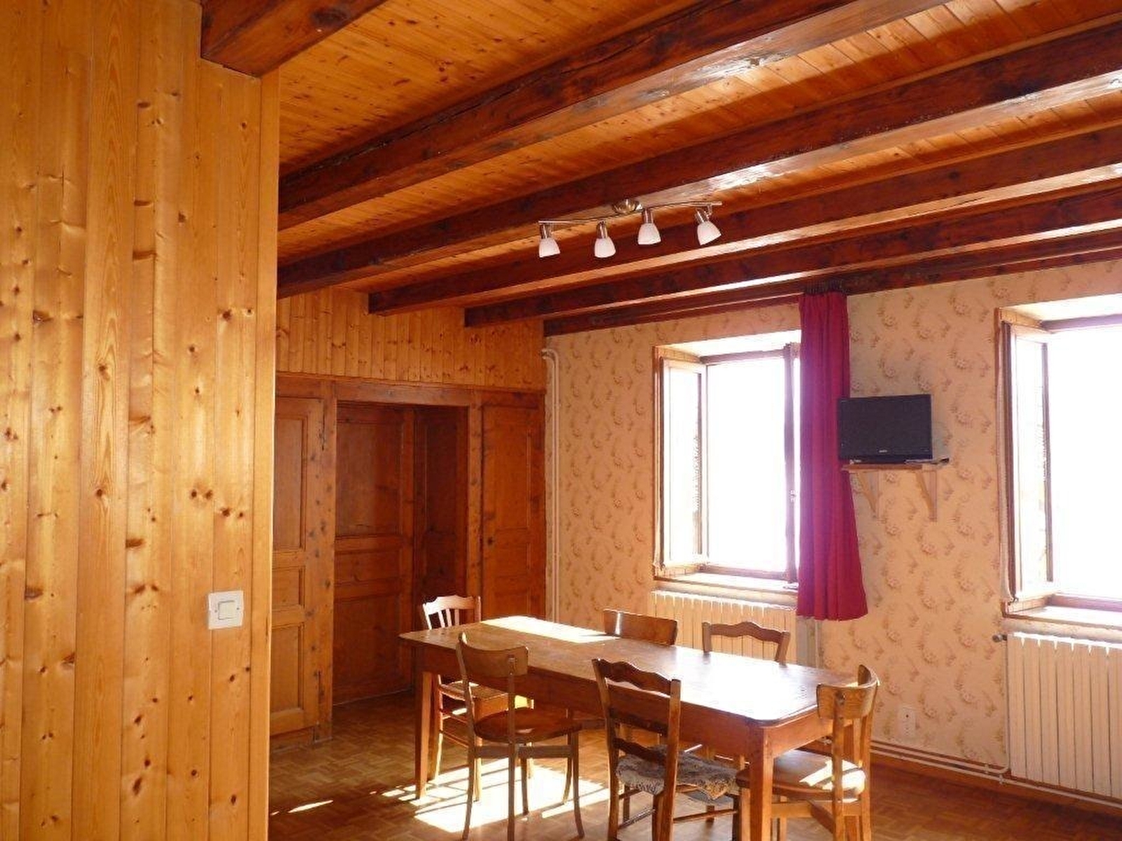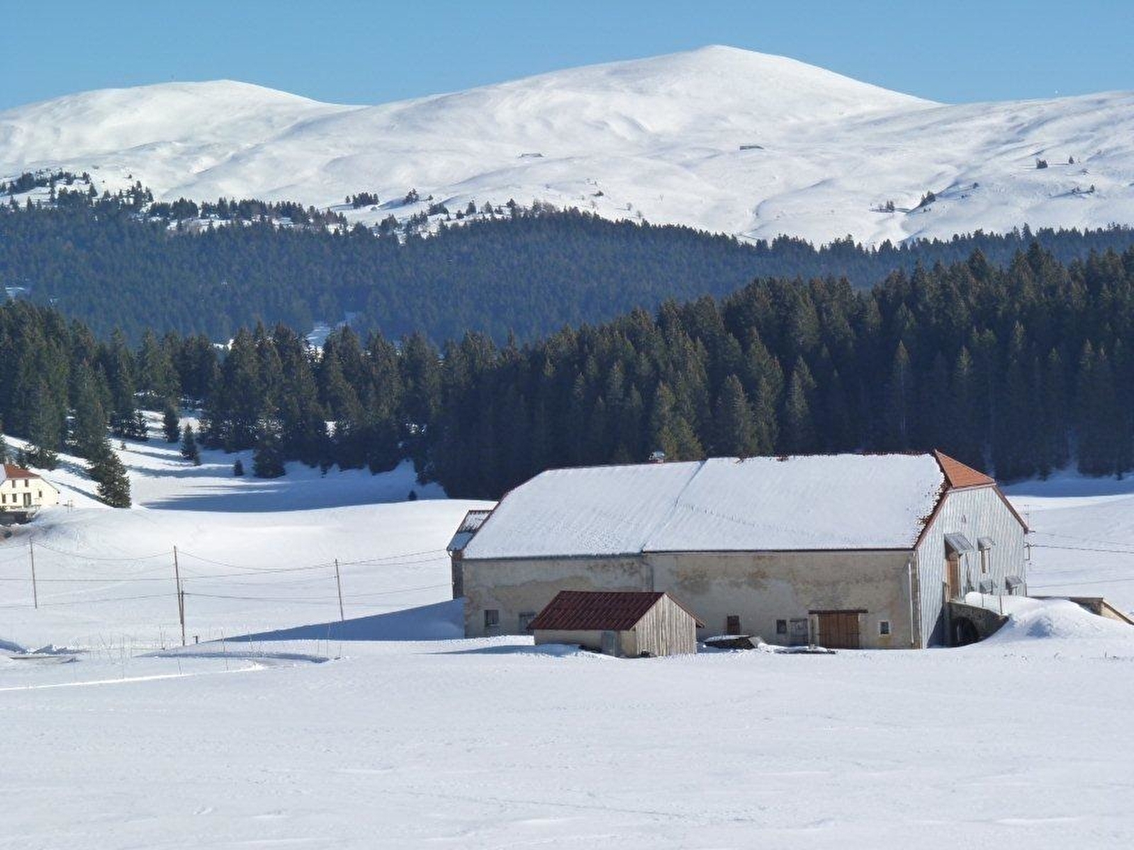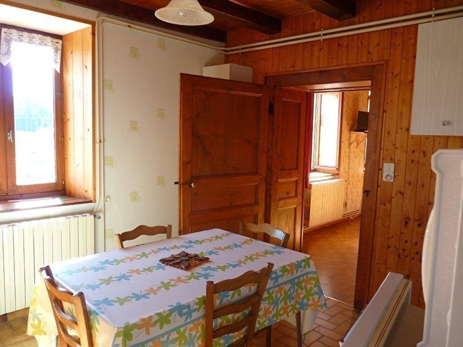 Appartement au RDC d'une ancienne et authentique ferme du Haut-Jura où se trouve un autre gîte (G429). Cuisine, salle d'eau, WC séparés. Une grande chambre avec cloison entre les lits, 1 lit 2 pl et 2 lits 1 pl. Site unique face aux Monts Jura (Crêt de la neige). Traversée par la GTJ et permettant toute activité au calme. Dans le Parc Naturel Régional du Haut-Jura. Terrain attenant non clos, espace jeux, local à ski et vélos, salon de jardin, barbecue. Chauffage central. Toutes charges comprises, taxe de séjour en sus