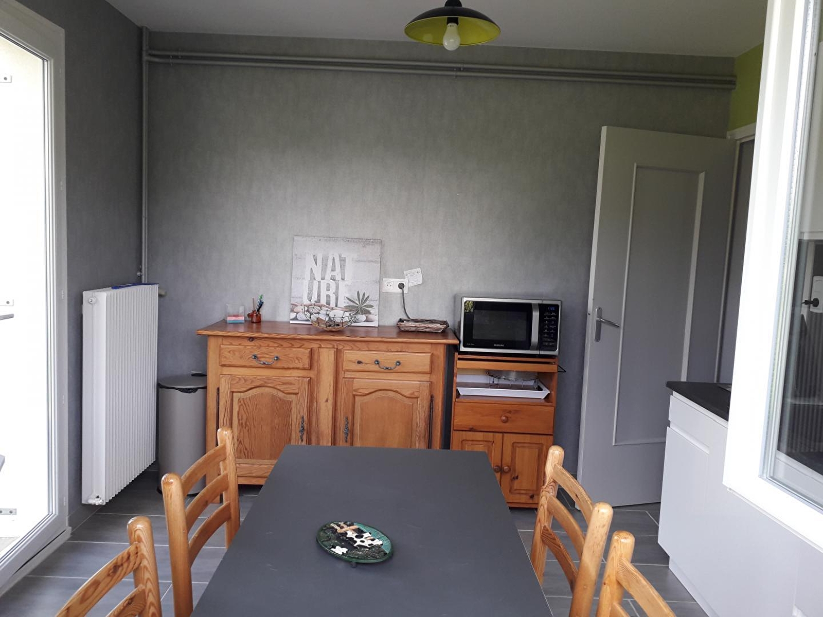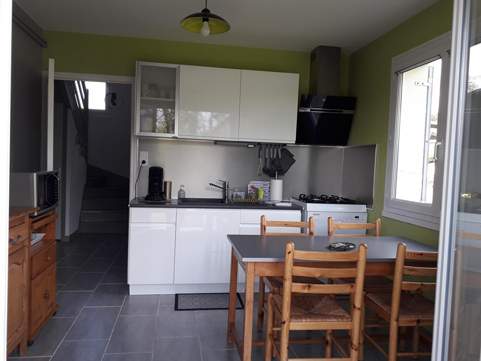 Entre Doubs et Jura, dans le charmant petit village de Port Lesney bordé par la rivière de la Loue (plage à 5mn à pieds du gîte), et non loin d'Arc et Senans, de Salins les bains ou encore d'Arbois, maison mitoyenne aménagée pour 4 personnes. Hall d'entrée, cuisine indépendante équipée, séjour avec canapé convertible et TV écran plat, WC indépendant. A l'étage : 2 chambres, l'une avec 2 lits 1 place et l'autre avec 1 lit 2 places. Salle d'eau avec grande douche à l'italienne. Terrasse et terrain attenant équipé de salon de jardin, barbecue et chaises longues. Lit parapluie et chaise haute à disposition.