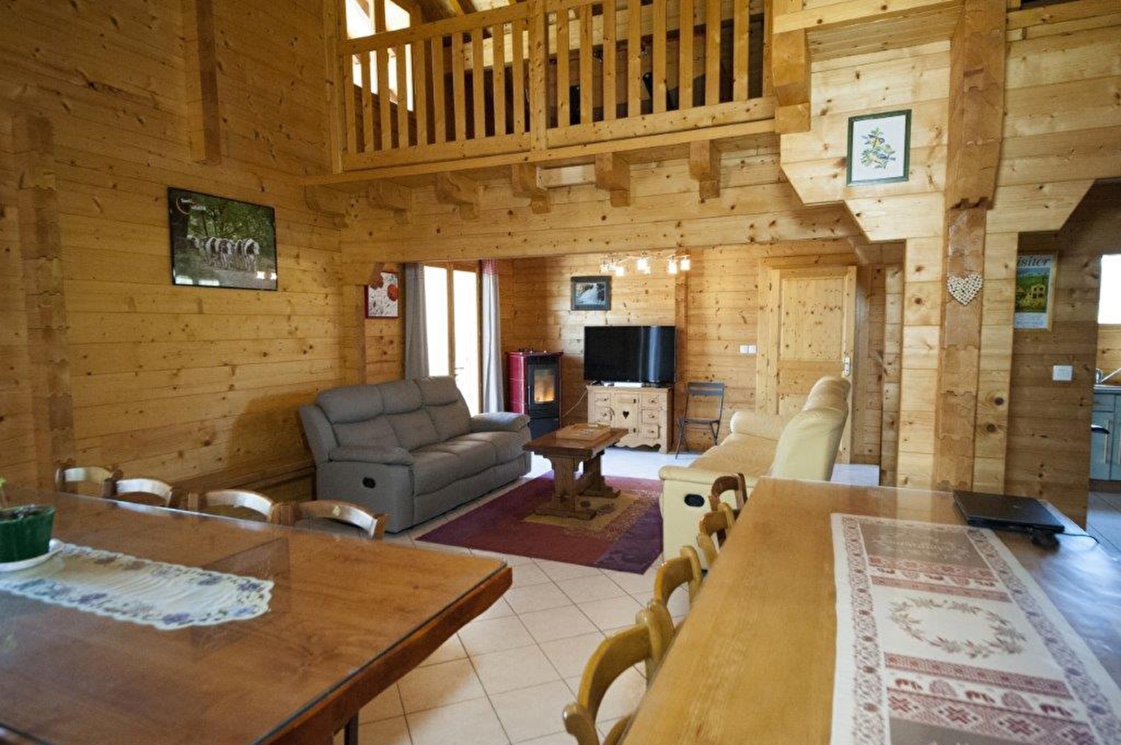 Chalet situé à quelques kilomètres de nombreux lacs et cascades, sentiers de randonnée et autres sites touristiques incontournables ! Une grande pièce à vivre lumineuse avec cuisine ouverte sur salon et salle à manger, cellier avec lave-linge et sèche-linge, une salle de bain avec baignoire, wc indépendant, 3 chambres ( une chambre avec 2 lits 1 place et 2 autres avec chacune 1 lit 2 places dont une qui dispose d'une douche avec lavabo). A l'étage : une mezzanine avec baby-foot, 2 chambres avec chacune 1 lit 2 places et 1 lit 1 place, salle d'eau avec douche, wc indépendant. Vous pourrez profiter de la grande terrasse avec salon de jardin et barbecue. Abri couvert pour 4 voitures. Chauffage : un sac de granulés fourni par jour. Le sac supplémentaire sera facturé 9.00€