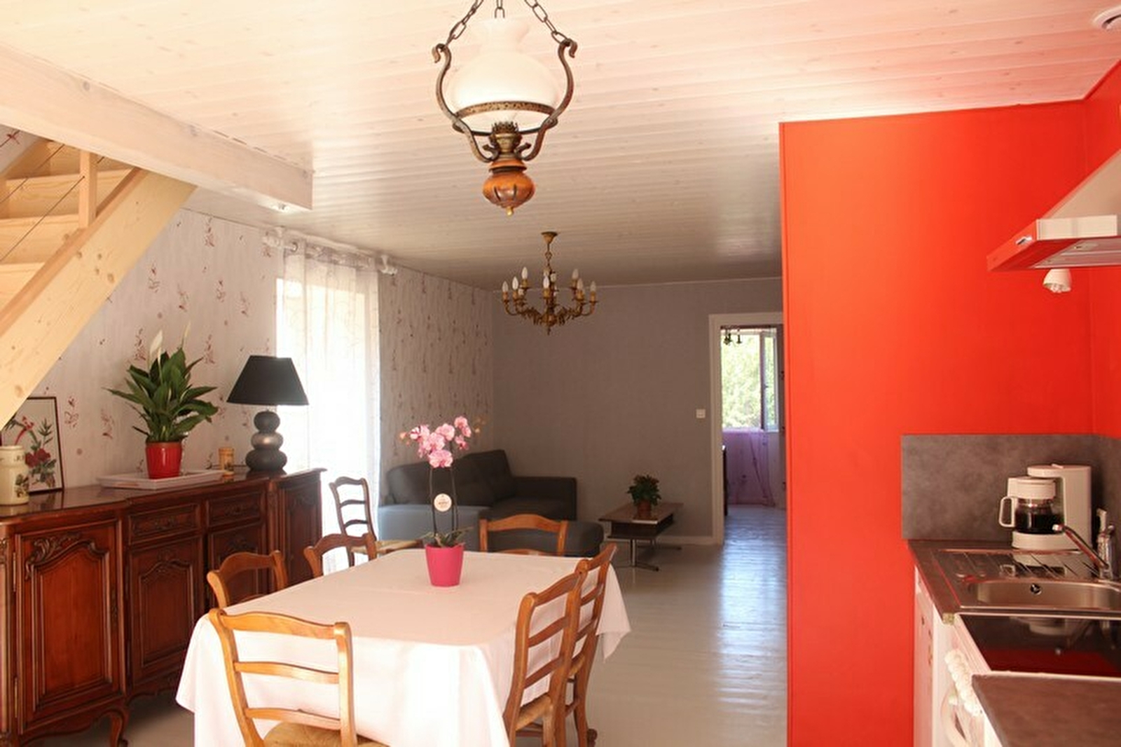 En plein coeur du vignoble jurassien, a seulement quelques kilomètres de Château-Chalon classé l'un des plus beau village de France ainsi que Baume-les-Messieurs, et non loin de la ville thermale de Lons-le-Saunier, jolie petite maison mitoyenne indépendante aménagée pour 6 personnes. Au RDC: pièce à vivre composée d'une cuisine toute équipée et d'un coin salon avec canapé convertible et TV écran plat, une chambre avec un lit de 140cm et une salle d'eau avec wc intégrés. A l'étage : 2 chambres, l'une avec un lit de 140cm et un lit de 90, et l'autre avec 1 lit de 160x200cm, une salle d'eau et wc indépendants. Terrasse offrant une splendide vue sur la nature environnante, équipée d'un salon de jardin et barbecue et grand terrain attenant arboré, idéal pour le repos ! A votre disposition sur demande : 2 vélos adultes, chaise et lit bébé. Pour l'accueil des animaux, contacter les propriétaires.