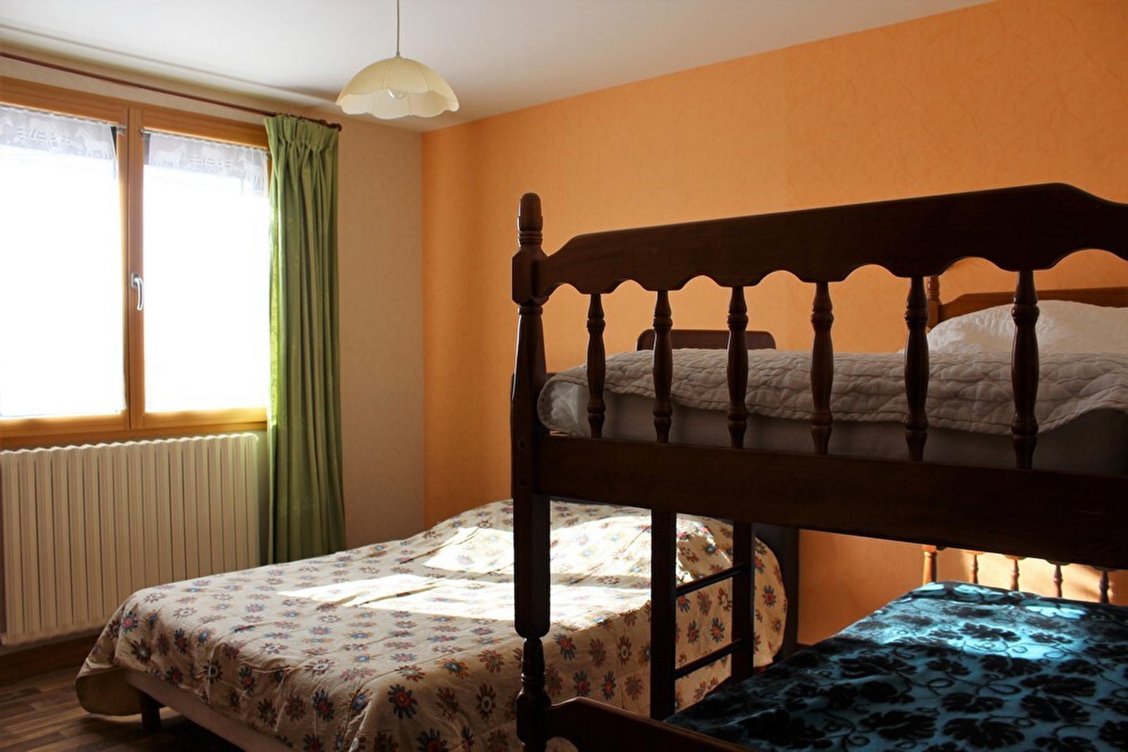 Idéalement situé au coeur du Parc Naturel Régional du Haut Jura, dans un quartier calme de la Station des Rousses, logement de plain-pied aménagé au rez-de-chaussée de la maison des propriétaires. Pièce à vivre avec cuisine équipée et coin salon (télévision écran plat et lecteur DVD). Dans la première chambres se trouvent un lit de 140cm et 2 lits superposés, et dans la seconde chambre, un lit de 140cm. Salle d'eau avec cabine de douche, lave-linge et sèche-linge. Wc indépendants. Terrain attenant non clos. GITE NON FUMEUR