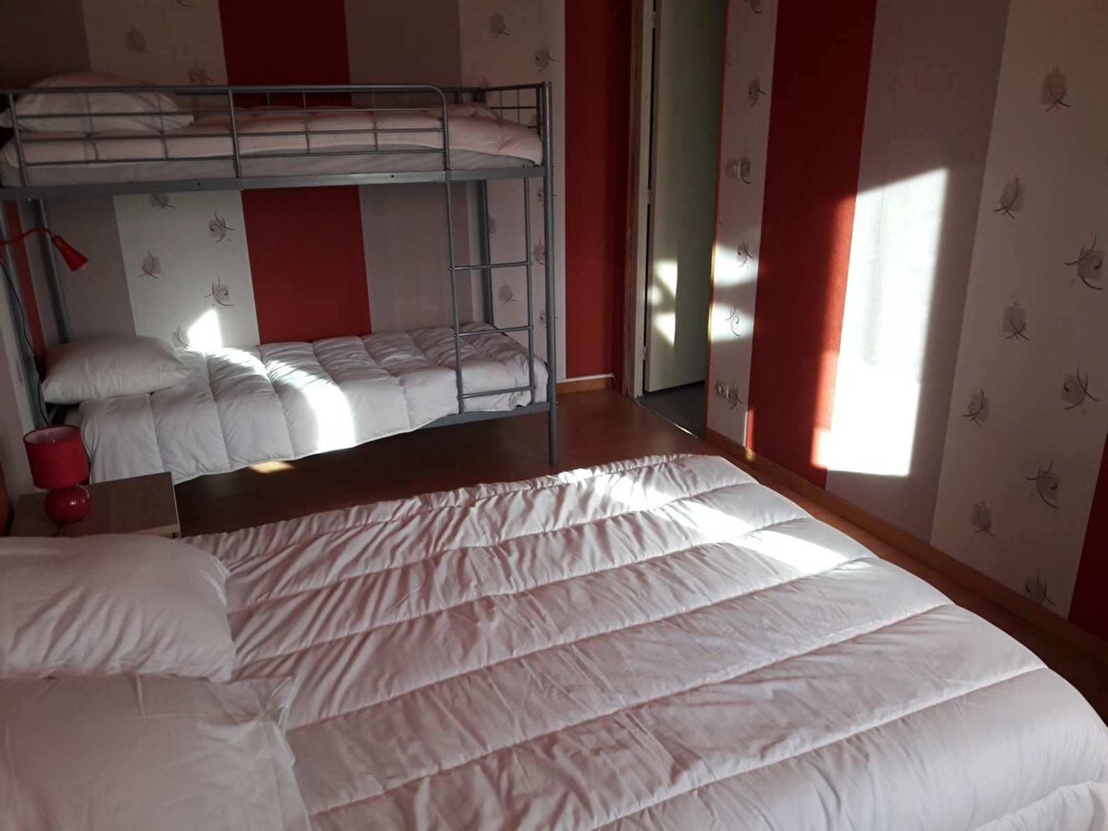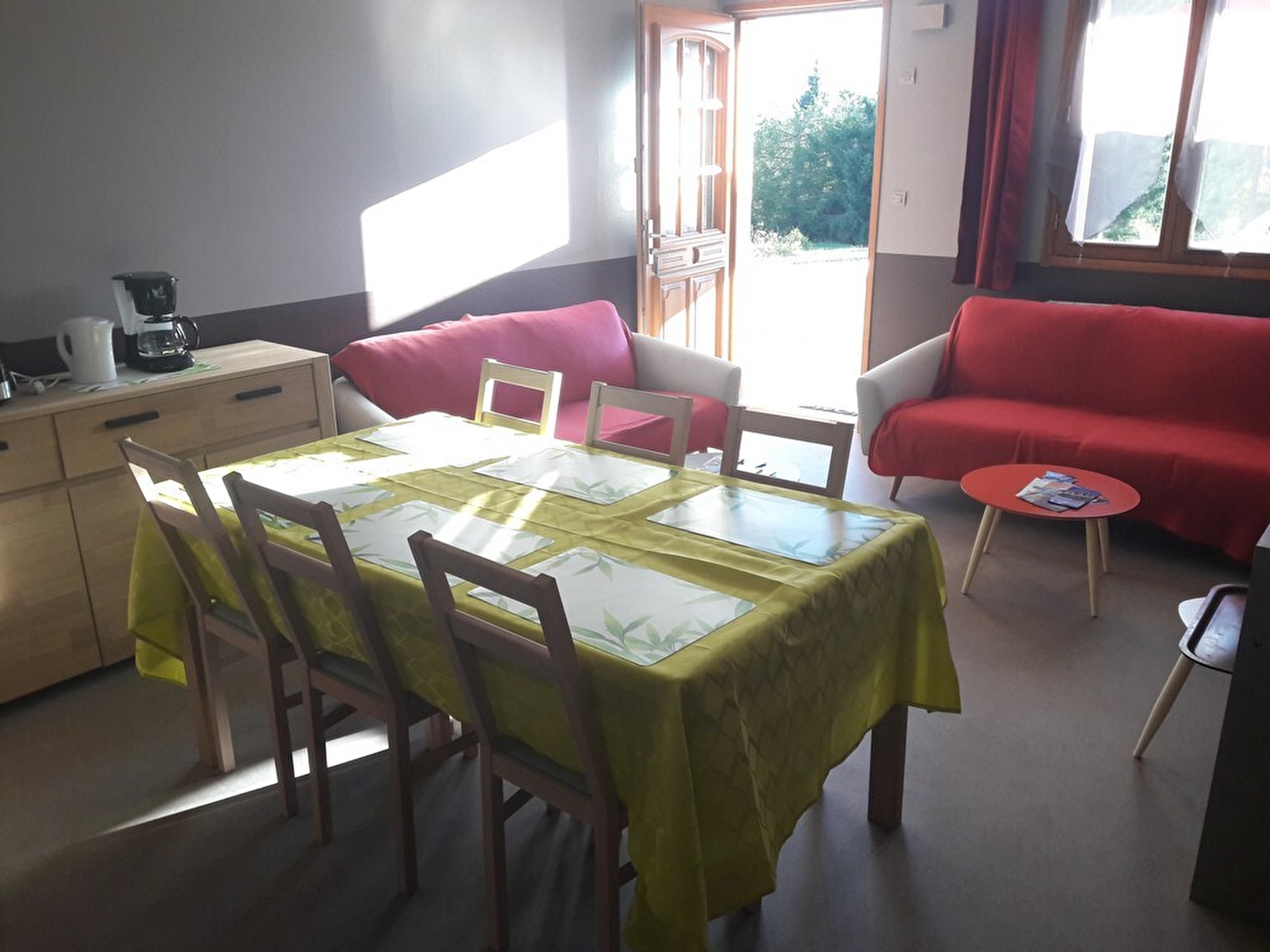 Logement pour 4 adultes et 2 enfants au cœur du Haut-Jura, à quelques pas de la station de ski des Marais, au rez-de-chaussée de la maison des propriétaires (dans laquelle se trouve également un autre gîte pour 2 personnes). Pièce à vivre composée d'une cuisine équipée et d'un coin salon avec canapé et télévision écran plat. Deux chambres, l'une avec un lit de 140 et l'autre avec un lit de 140 et 2 lits de 90 superposés, et salle d'eau avec grande douche. Wc indépendants. Terrasse avec salon de jardin et barbecue et terrain attenant non clos. Abri voiture et terrain de pétanque à disposition. Linge de lit non fournit