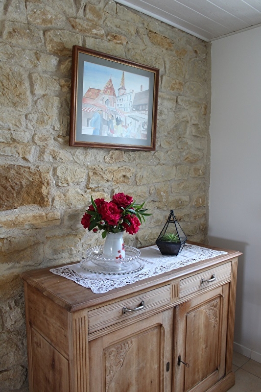 Idéalement située à 5 kilomètres de l'autoroute , cette charmante maison entièrement rénovée possède de nombreux atouts pour passer un agréable séjour en famille ou entre amis. En RDC, spacieuse cuisine toute équipée avec poêle à granulés (1er sac de pellets offert), coin salon avec TV, 1 chambre avec lit double et salle d'eau privative équipée d'une douche et d'un WC, coin buanderie avec lave-linge et sèche-linge, WC indépendant. A l'étage, 2 chambres avec chacune un lit double, dont une avec une salle de bain privative avec baignoire et WC, une chambre avec 2 lits superposés, une salle d'eau et un WC indépendant. Une autre pièce pouvant faire office de studio avec une kitchenette et un canapé convertible et qui offre un accès direct sur l'extérieur. Pour votre plus grand confort, les draps sont fournis. Coté extérieur, un vaste terrain aménagé avec salon de jardin, plancha, chiliennes, vous permettra de profiter de la quiétude des lieux. Un garage fermé est également mis à disposition pour les motos (avec possibilité de petit bricolage) et les vélos. La base nautique de Desnes se trouve à moins de 5 minutes du gîte : plage surveillée, pédalos, jeux d'eau gonflable, petits et grands passeront d'agréables moments !
