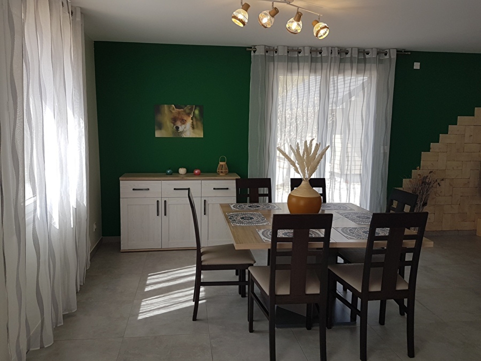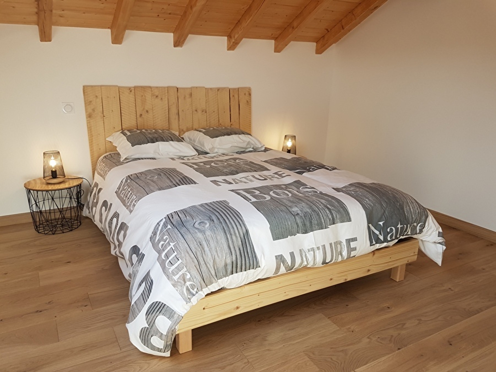 Cette maison neuve à ossature bois située au calme dans une impasse se compose au rez-de-chaussée d'une pièce à vivre avec cuisine intégrée toute équipée, d'un salon avec TV, d'une salle d'eau avec douche à l'italienne, d'une buanderie et d'un WC indépendant. A l'étage, se trouvent 3 chambres, 2 aménagées avec un lit en 140, une avec 2 lits simples et un espace dressing. Côté extérieur, vous pourrez profiter d'une terrasse aménagée avec salon de jardin, barbecue et transats. Pour votre plus grand confort, les lits seront faits à votre arrivée. Un local est mis à votre disposition pour entreposer du matériel (skis, vélos ou autres) Note : chauffage au sol basse température A votre disposition un sauna, voir directement avec les propriétaires sur place.