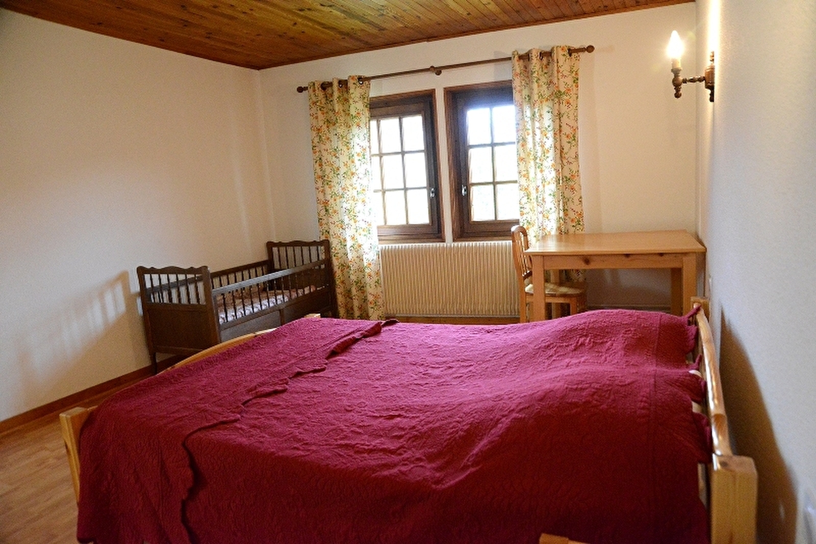 Au coeur de la région des Lacs et des Cascades, maison mitoyenne avec entrée indépendante. Au rez de chaussée: cuisine équipée, séjour avec cheminée, WC indépendants, salle d'eau. A l'étage: ch1: 1 lit 2 pl et un lit bébé, ch2: 1 lit 2 pl, 1 lit 1 pl, ch3: 1 lit 2 pl, salle de bains, WC indépendant à l'étage. Possibilité d'accueillir 2 personnes supplémentaires grâce à la quatrième chambre avec 1 lit 2 places (26€ la chambre supplémentaire par nuit). Cour non close, vaste jardin attenant clos de 5 ares avec salon de jardin, barbecue, transats. Parking privé sur place. Chauffage central et au bois (bois fourni gratuitement). Électricité : 0.26 cts/kwh. A disposition: gaufrier, service à raclette, service à fondue.