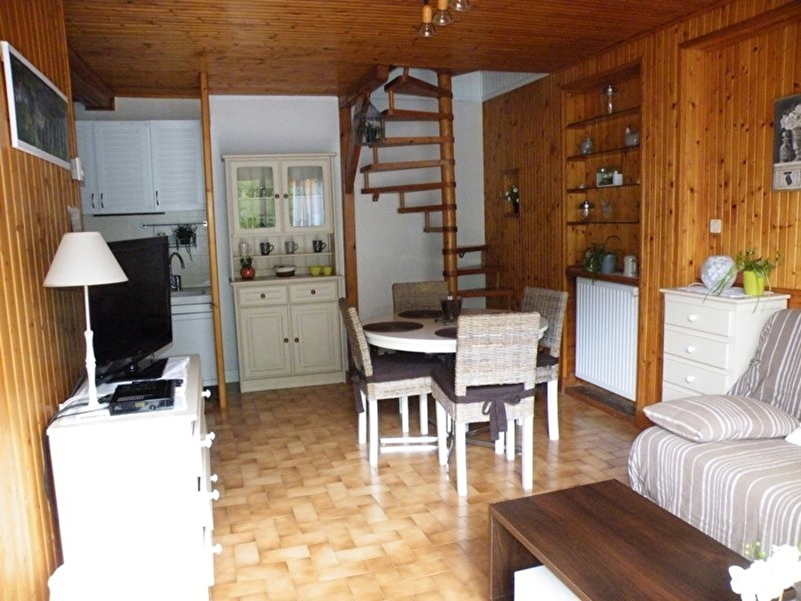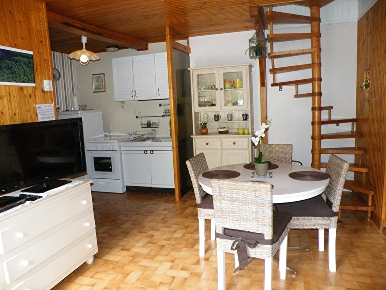 Situé le long de la route qui mène aux lacs, cette maison mitoyenne se compose au RDC: cuisine, salon, canapé, salle d'eau, wc indépendants, ch1: 1 lit 2 pl. A l'étage: ch2: 2 lits 1 pl, terrain attenant non clos, salon de jardin, barbecue. Chauffage central. Toutes charges comprises. Parking à 5 mètres et volets dans les chambres.