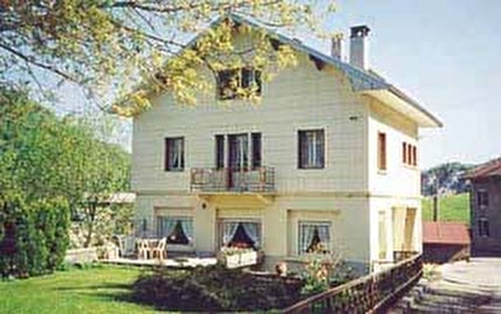 Logement au 1er étage. Cuisine, séjour, une première chambre à 2 lits et une chambre avec 1 lit 2 places, salle de bains et wc séparés, terrain attenant non clos, balcon, salon de jardin. Chauffage central. Toutes charges comprises.