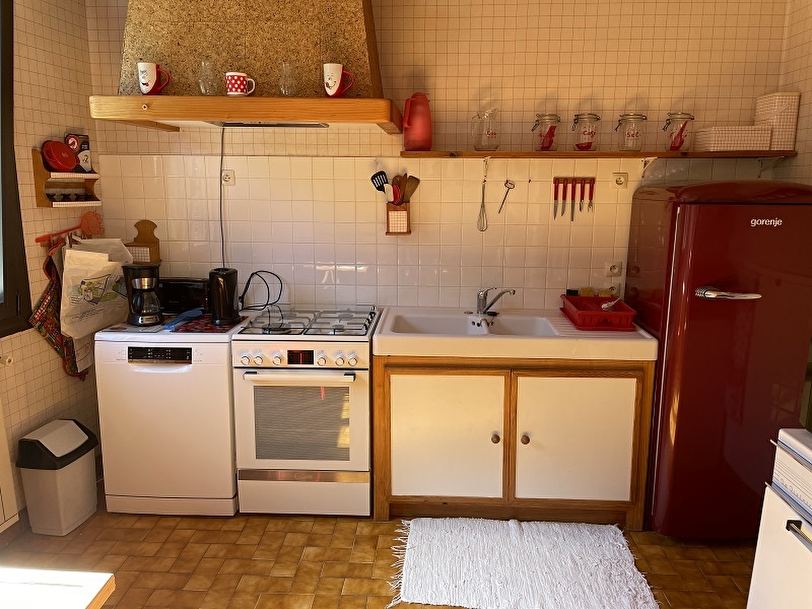Logement à l'étage de la maison du propriétaire qui abrite 2 autres gîtes. Cuisine-séjour avec canapé, congélateur, ch1: 1 lit 2 pl, 1 lit 1 pl, salle d'eau, wc indépendants, buanderie commune. Cour et jardin clos communs aux 2 autres gîtes, salon de jardin, barbecue, jeux enfants, balançoire, terrain de pétanque. Chauffage central. Toutes charges comprises. Parc attenant de 5600 m².