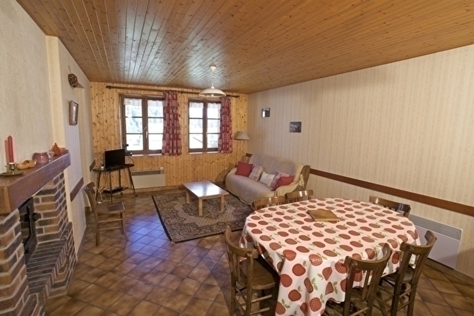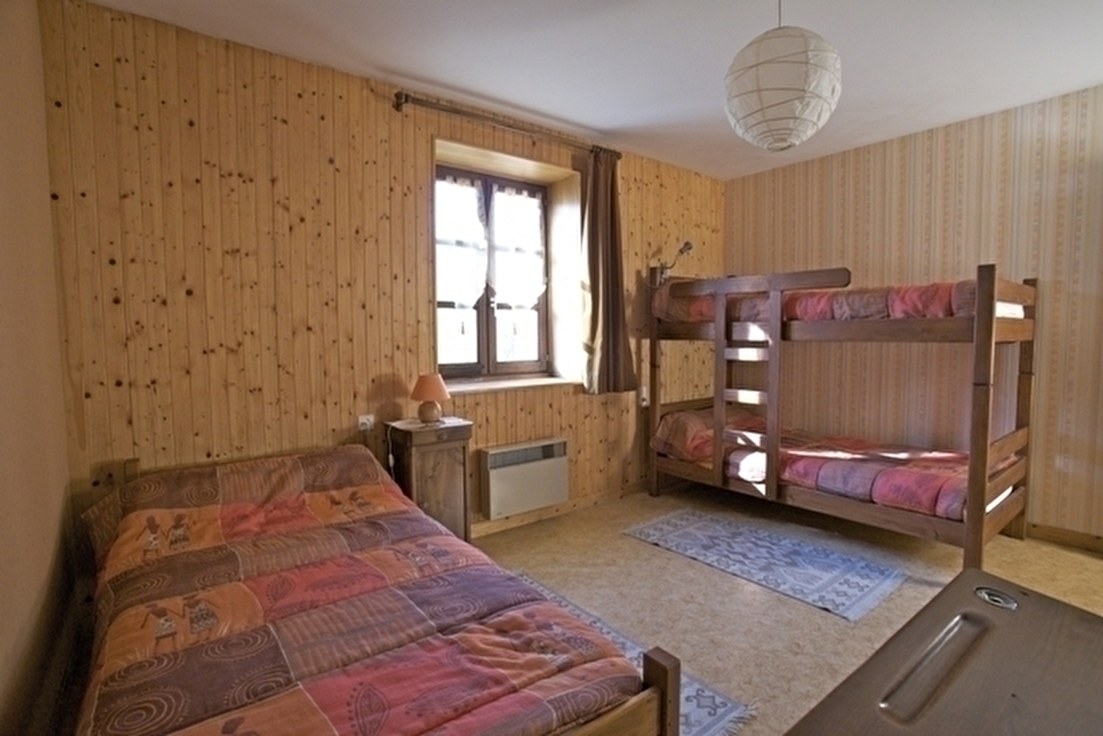Maison mitoyenne à celle des propriétaires avec entrée au RDC. A l'étage: séjour, coin-cuisine salon, ch1: 1 lit 2 pl, ch2: 1 lit 2 pl, ch3: 2 lits 1 pl, salle d'eau. Cour commune non close et terrain attenant non clos, salon de jardin, barbecue. Chauffage électrique. Charges non comprises. Confort: congélateur. A disposition: lit bébé, 1 lit 1 pl supplémentaire. Terrain de pétanque. Complexe piscine sauna et jacuzzi dans le village (2km).